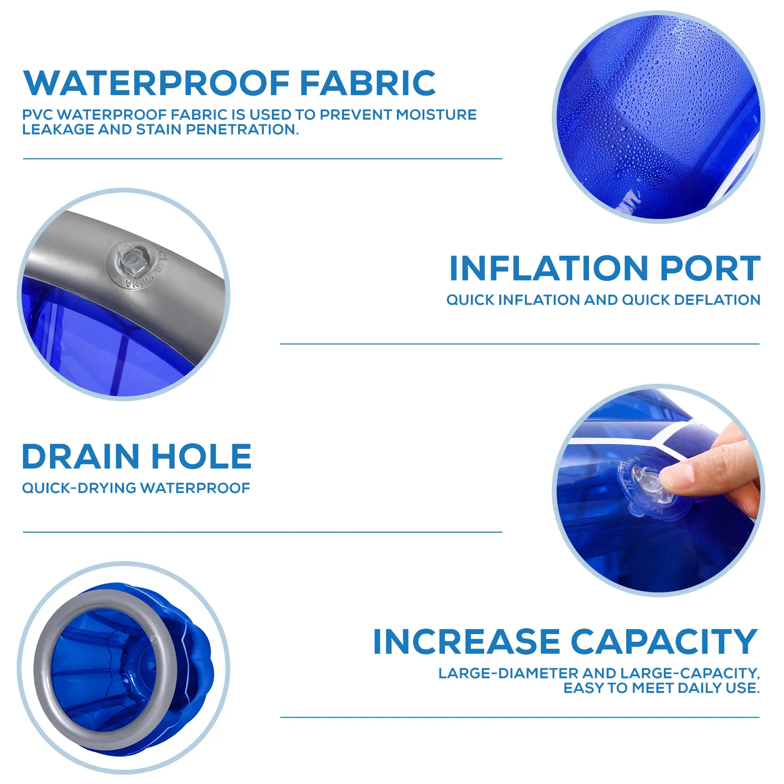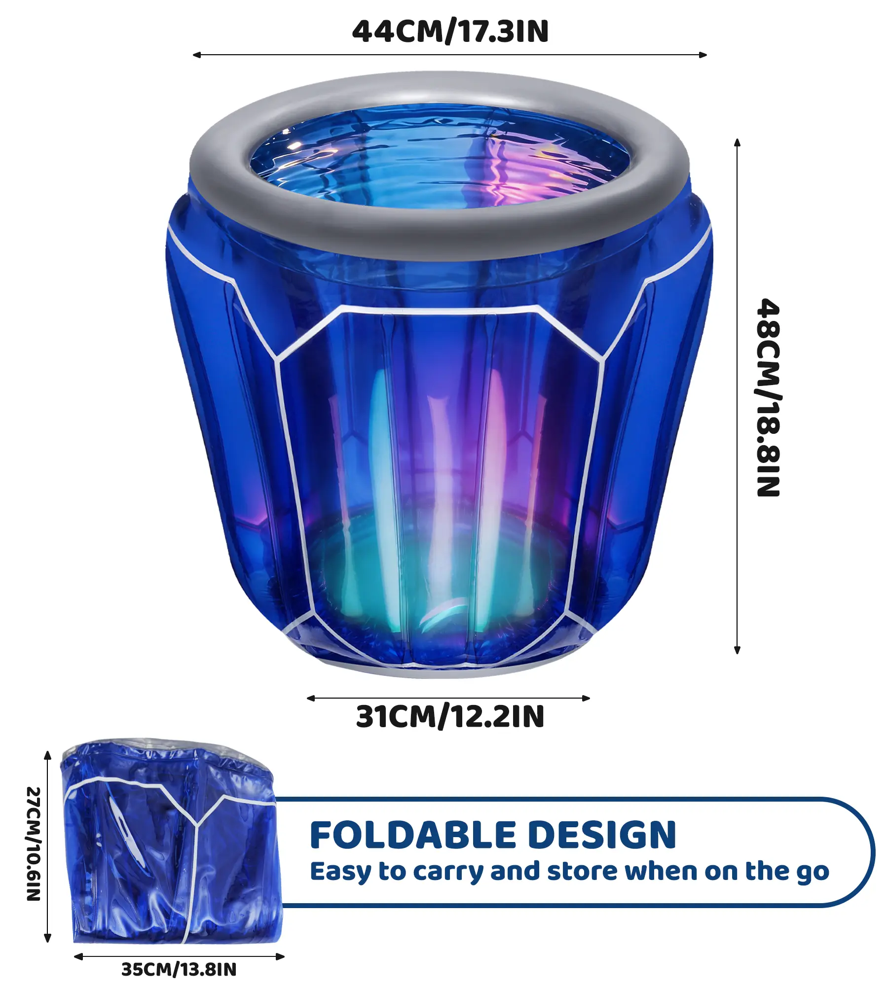 Crafted from thickened, eco-friendly PVC material, our cooler is designed for durability and stability. The "intelligent design" ensures it stays upright and self-supporting even when filled to the brim with ice, water, or bottles. It's easy to clean, puncture-resistant, and built to withstand the rigors of outdoor adventures and rowdy parties.