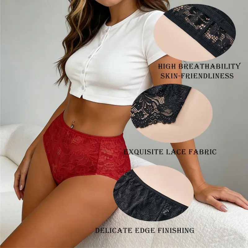 The lace fabric is lightweight and breathable. The inner layer uses pure cotton, skin-friendly material that absorbs moisture and wicks sweat, eliminating stuffiness and stickiness. It stays dry and comfortable for daily commuting and home wear, and sensitive skin can wear it with confidence.