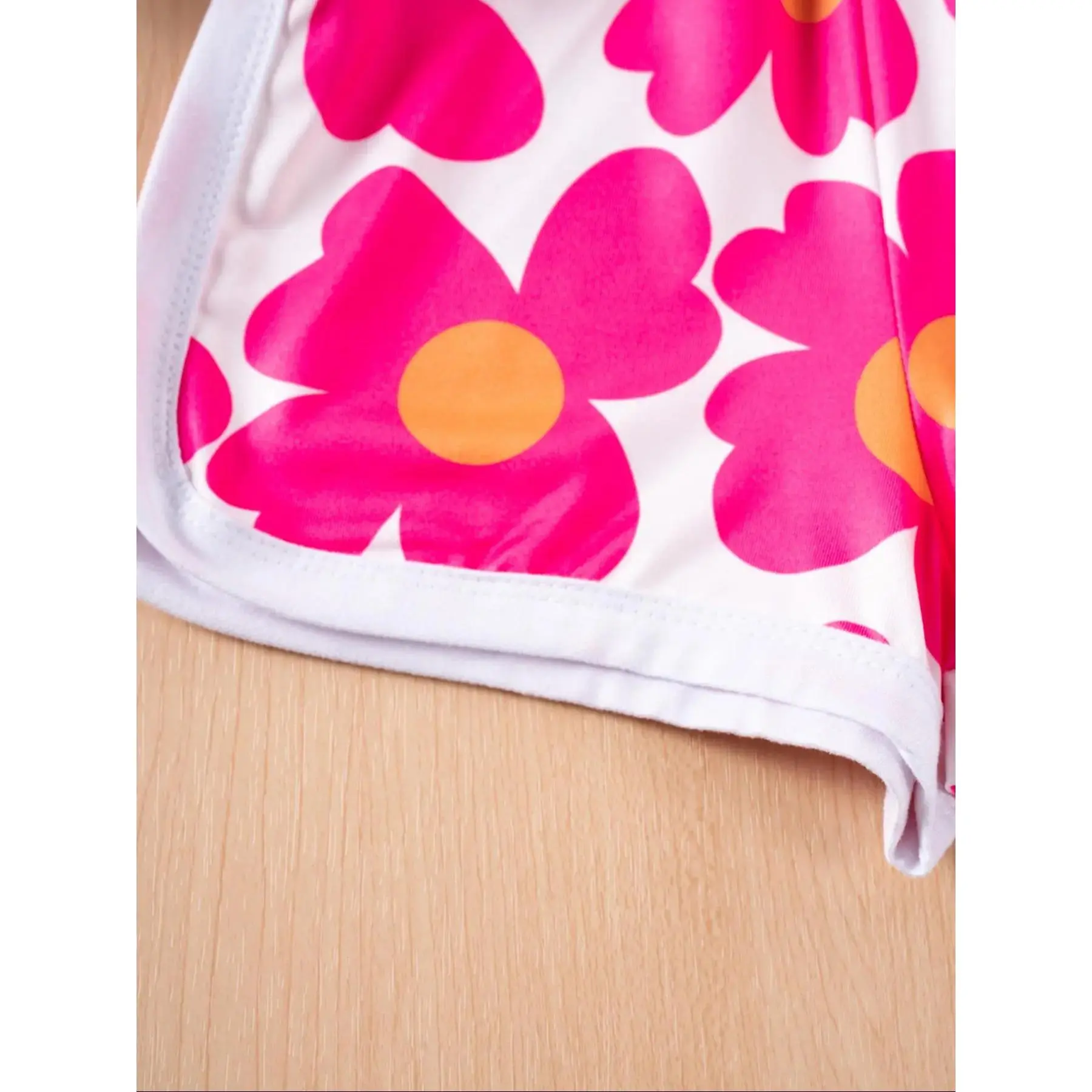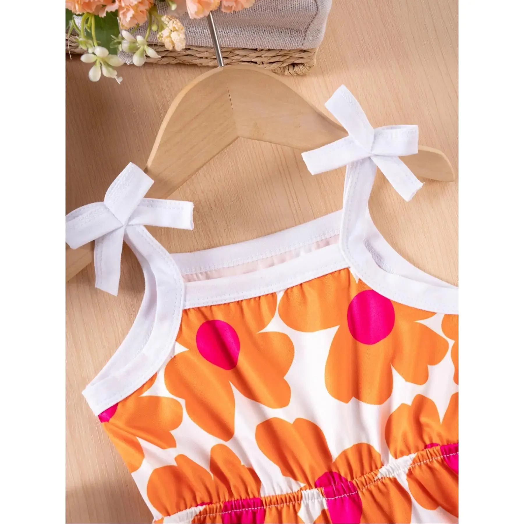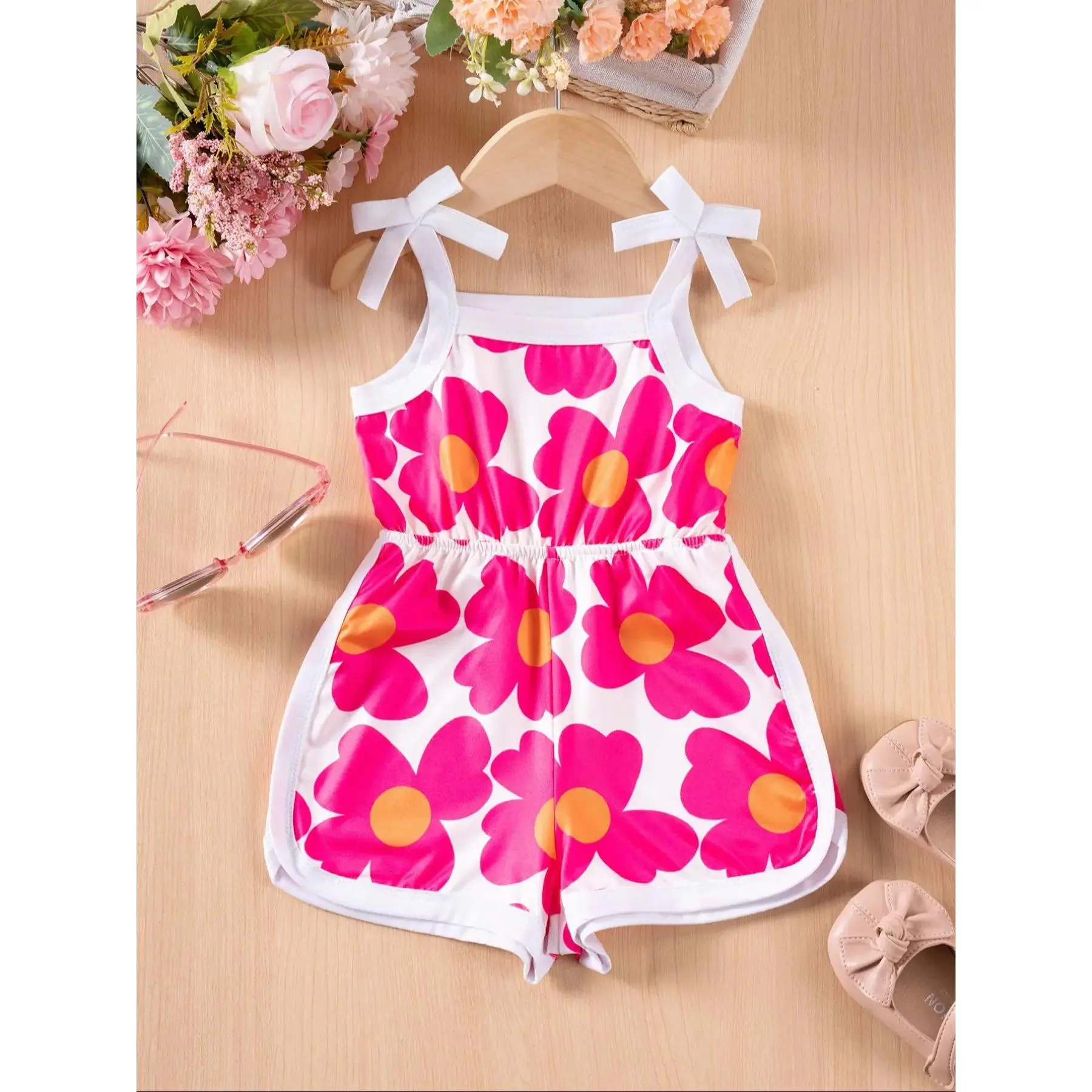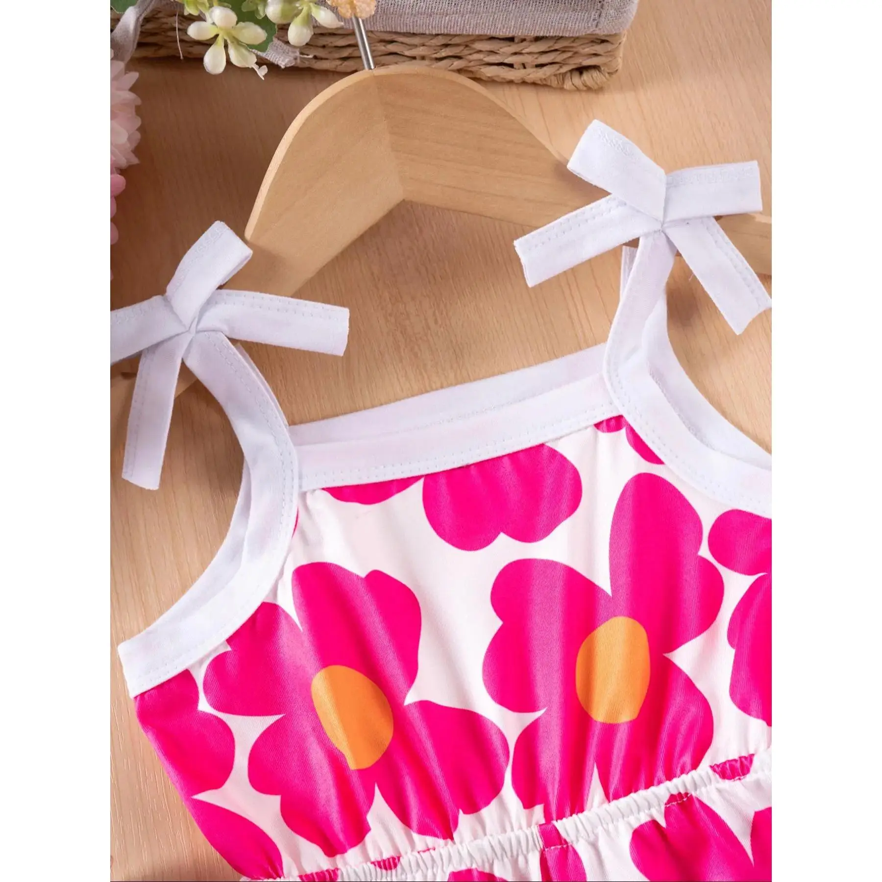 Toddler Girl's Floral Print Bow Tie Waist Romper, Cute Sleeveless Romper for Holiday Vacation, Toddler Outfit, Kids Clothes for Summer, Baby Girl Clothes