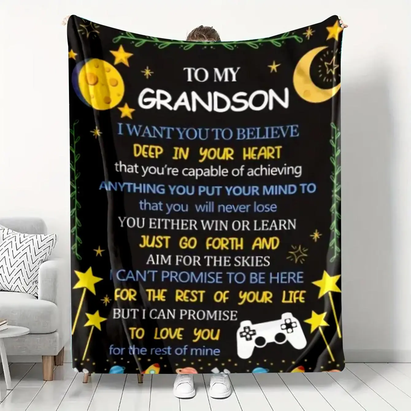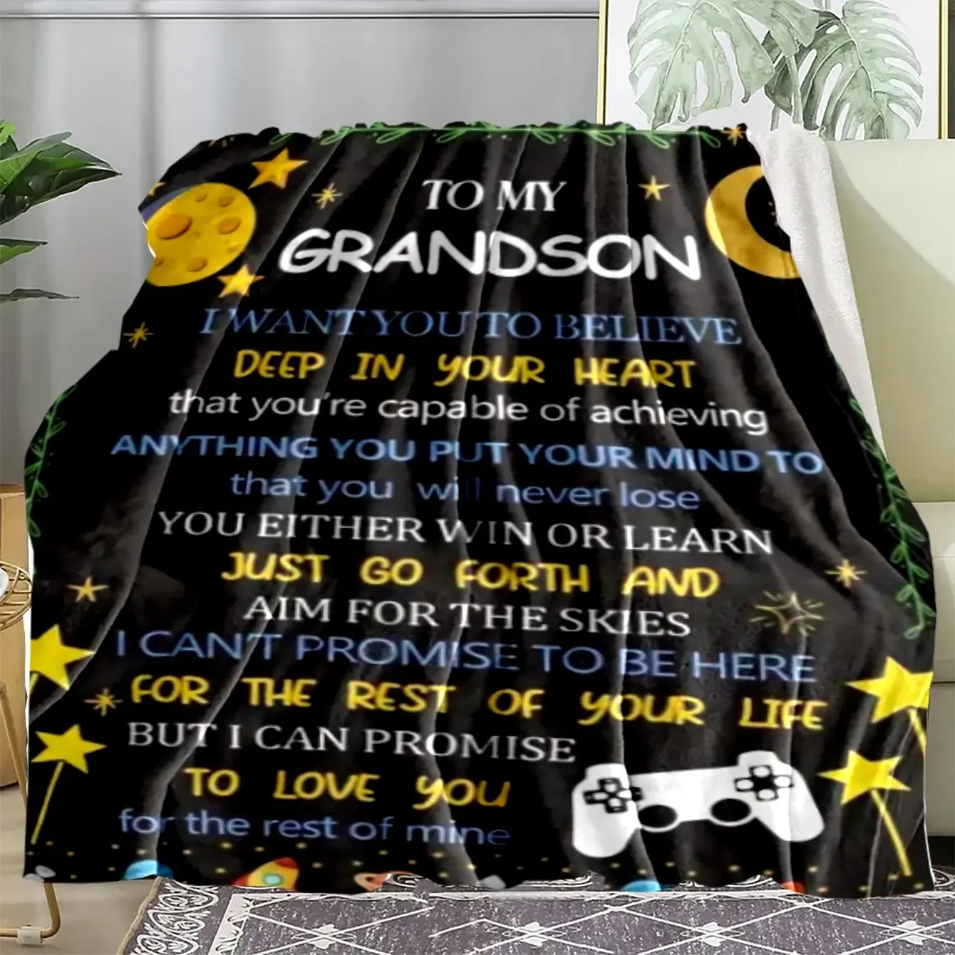 Letter To Grandson Pattern Flannel Blanket, Custom Flannel Blanket, 1 Count Soft Warm Throw Blanket, Air-conditioned Room Blanket, Warm Nap Blanket for Home Office Travel, Slogan Print Blanket, Inspirational Blanket