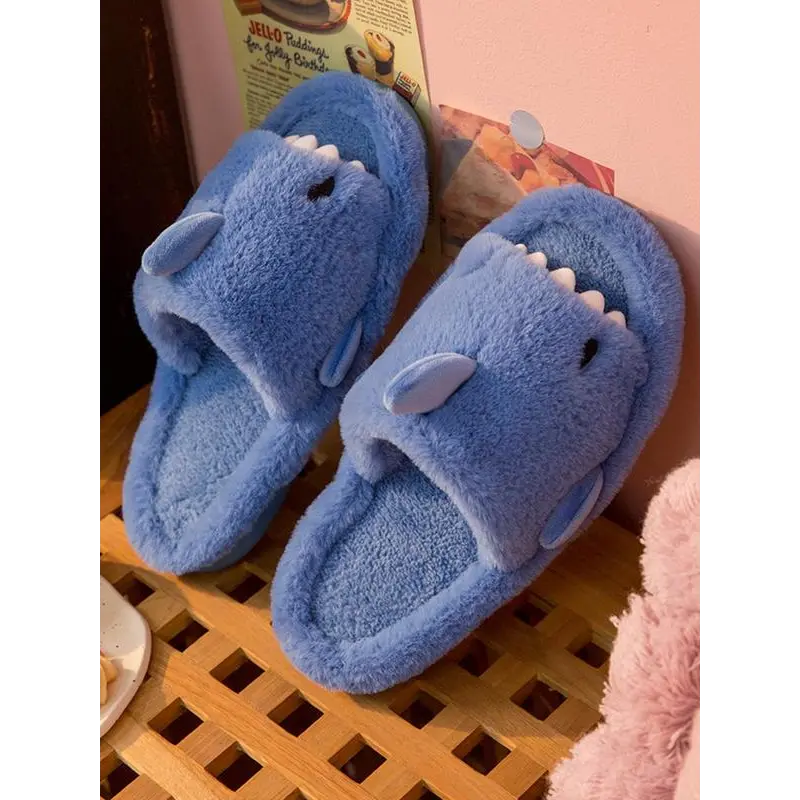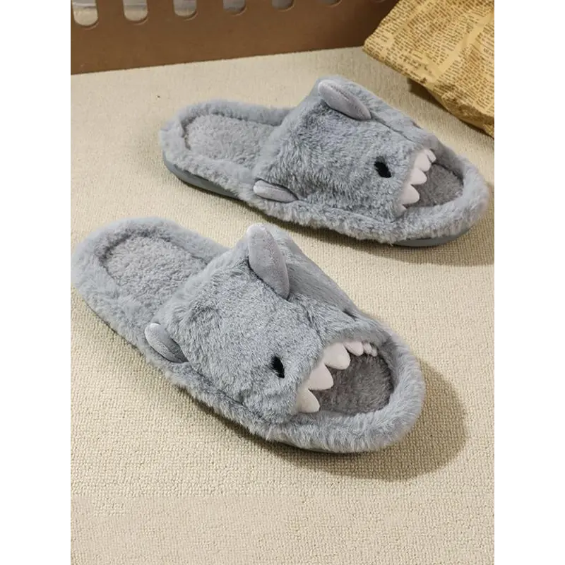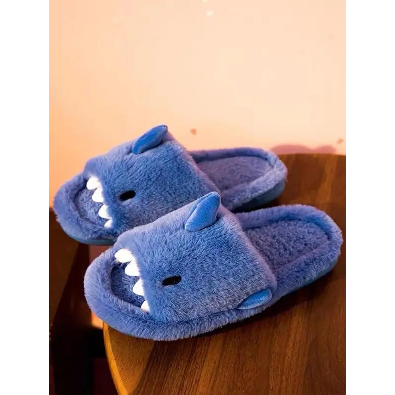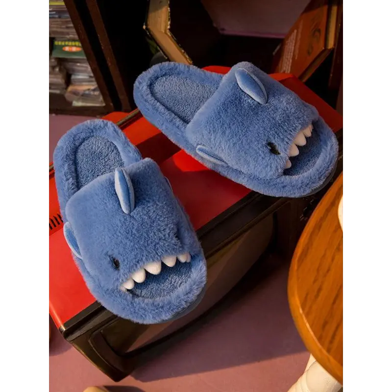 (New)2024 Cute Plush Shark Slides for Men, Soft Fuzzy House Slippers, Warm Anti-slip Slippers, Boy's Kawaii Comfort Walking Shoes, Footwear