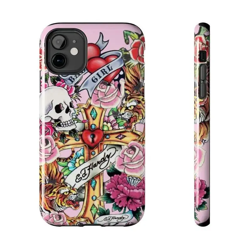 Trendy Pink Ed Hardy Inspired Tough Phone Cases, Phone Durable, Gift, Accessories Top Trendy Phone Cases Phone Cover Hard Case Tough 2-piece Phone Case
