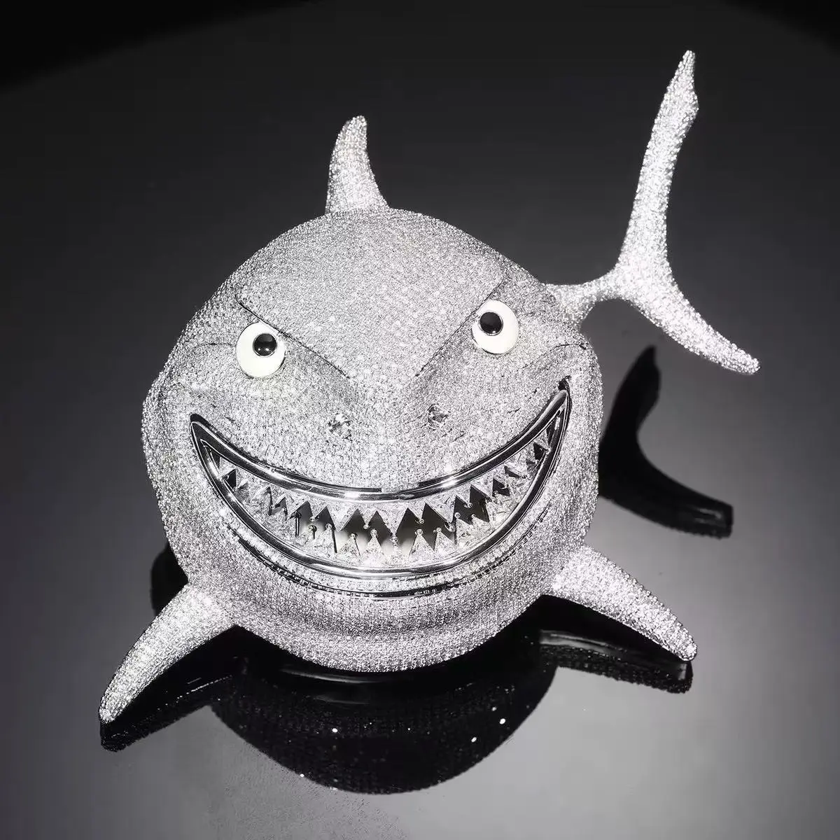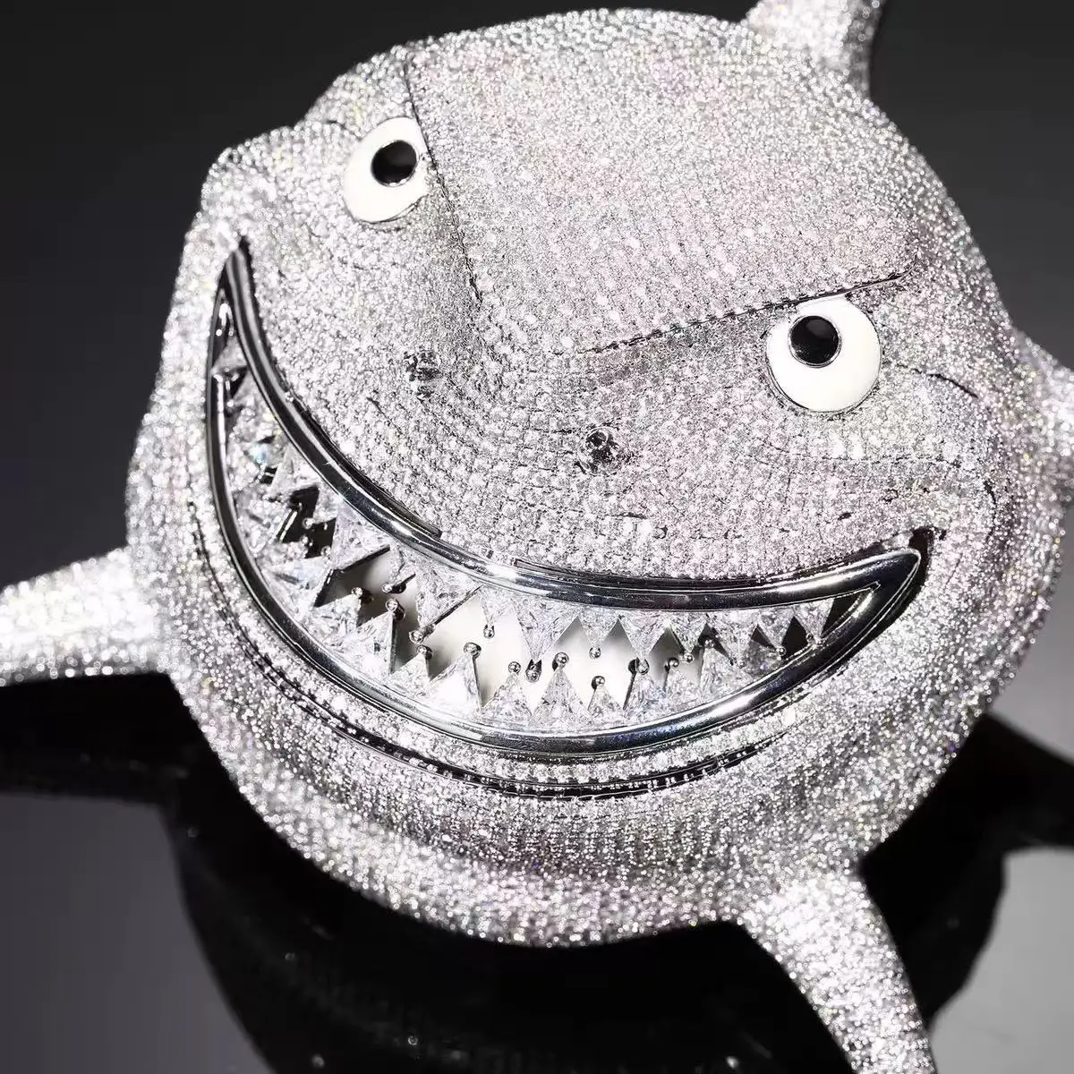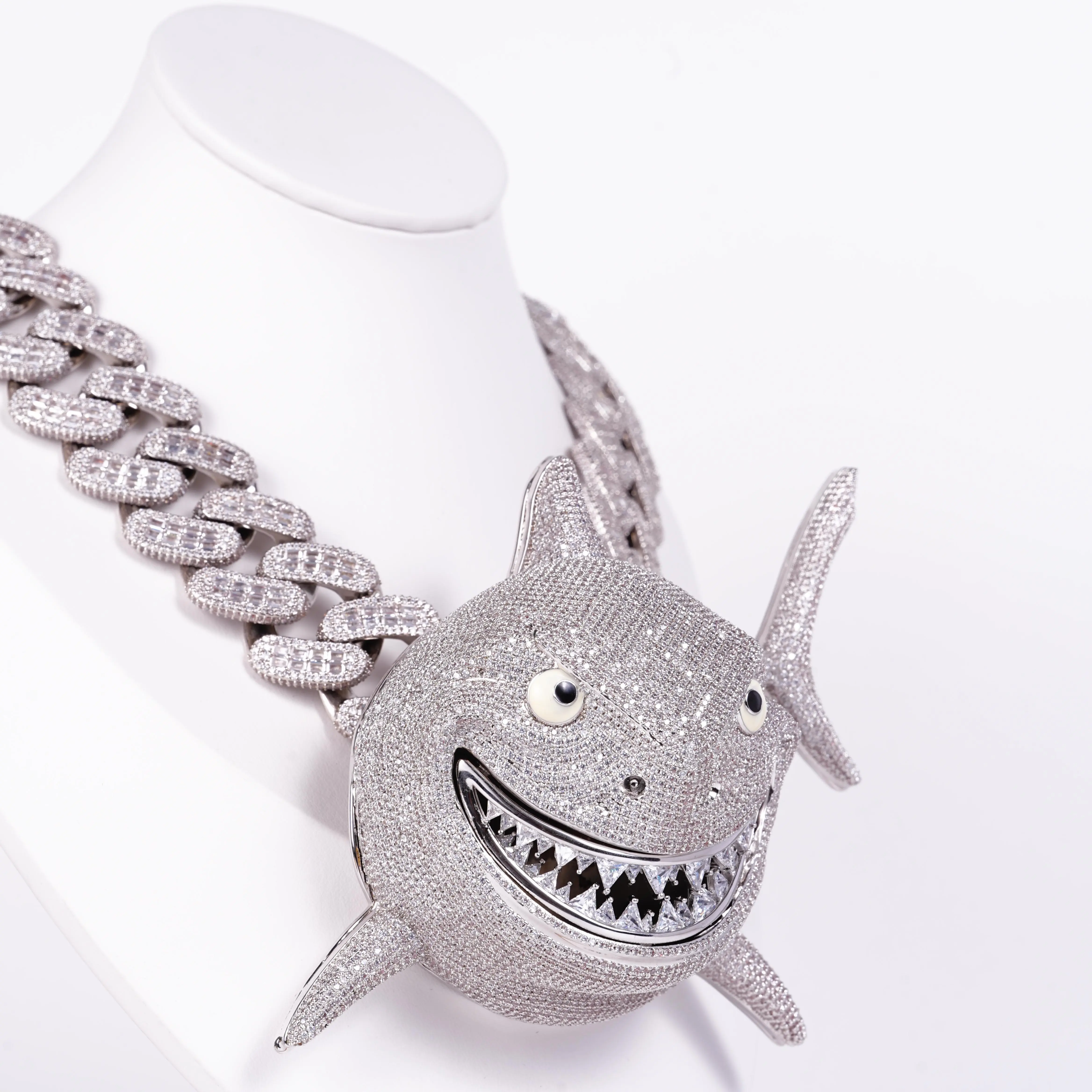 M2-2260 Iced Out Shark Head Pendant Men's Statement Rapper Chain Bling Accessory with Trendy Edgy Look for Rappers and Stylish Men Mois Tennis Necklace Luminous Couple Necklace customizable with engraved letters, logos or patterns Iced Out Jewelry