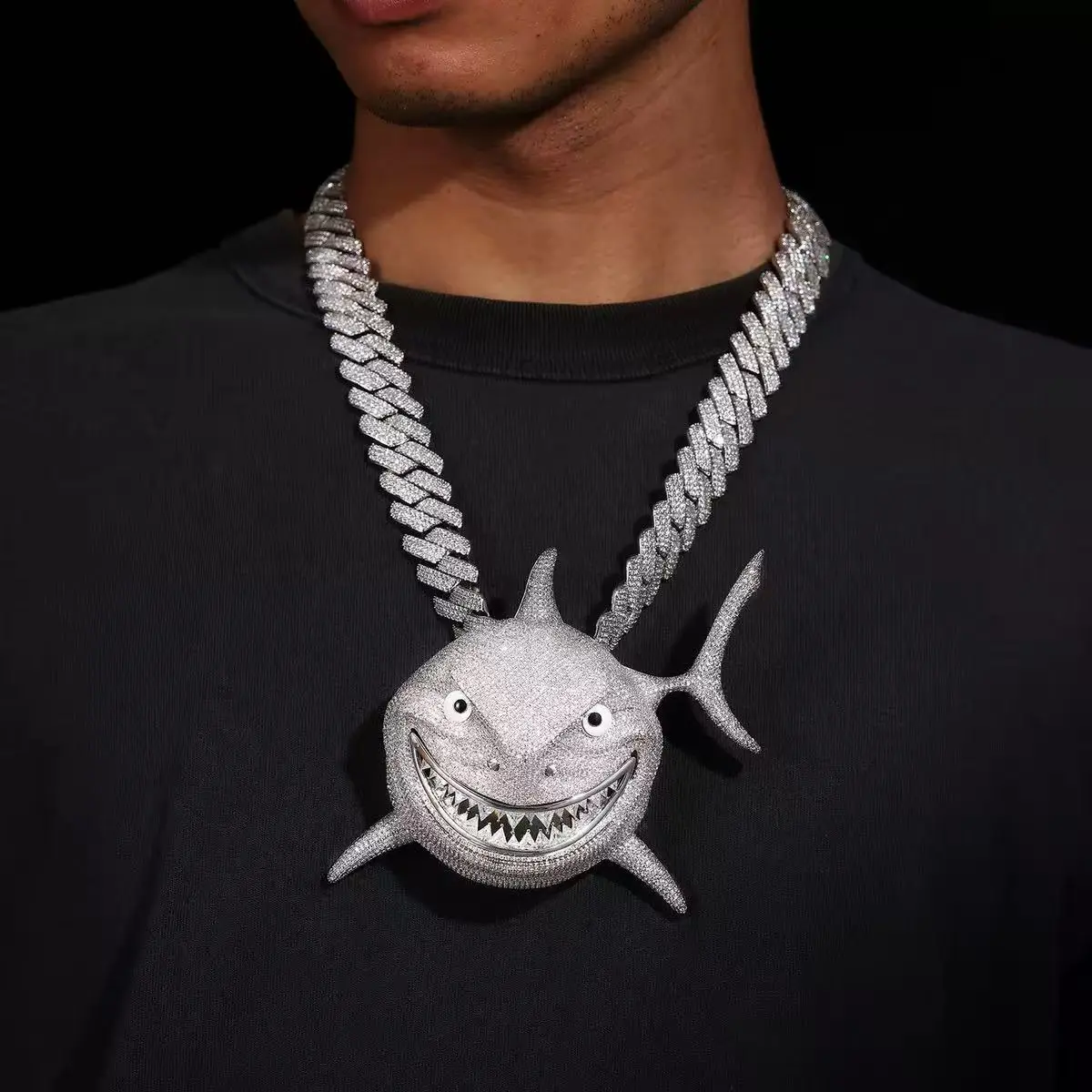 This pendant showcases a striking shark head design, ideal for making a bold statement. Perfect for men who want to stand out with their accessories. The design is eye-catching and adds a unique flair to any outfit.