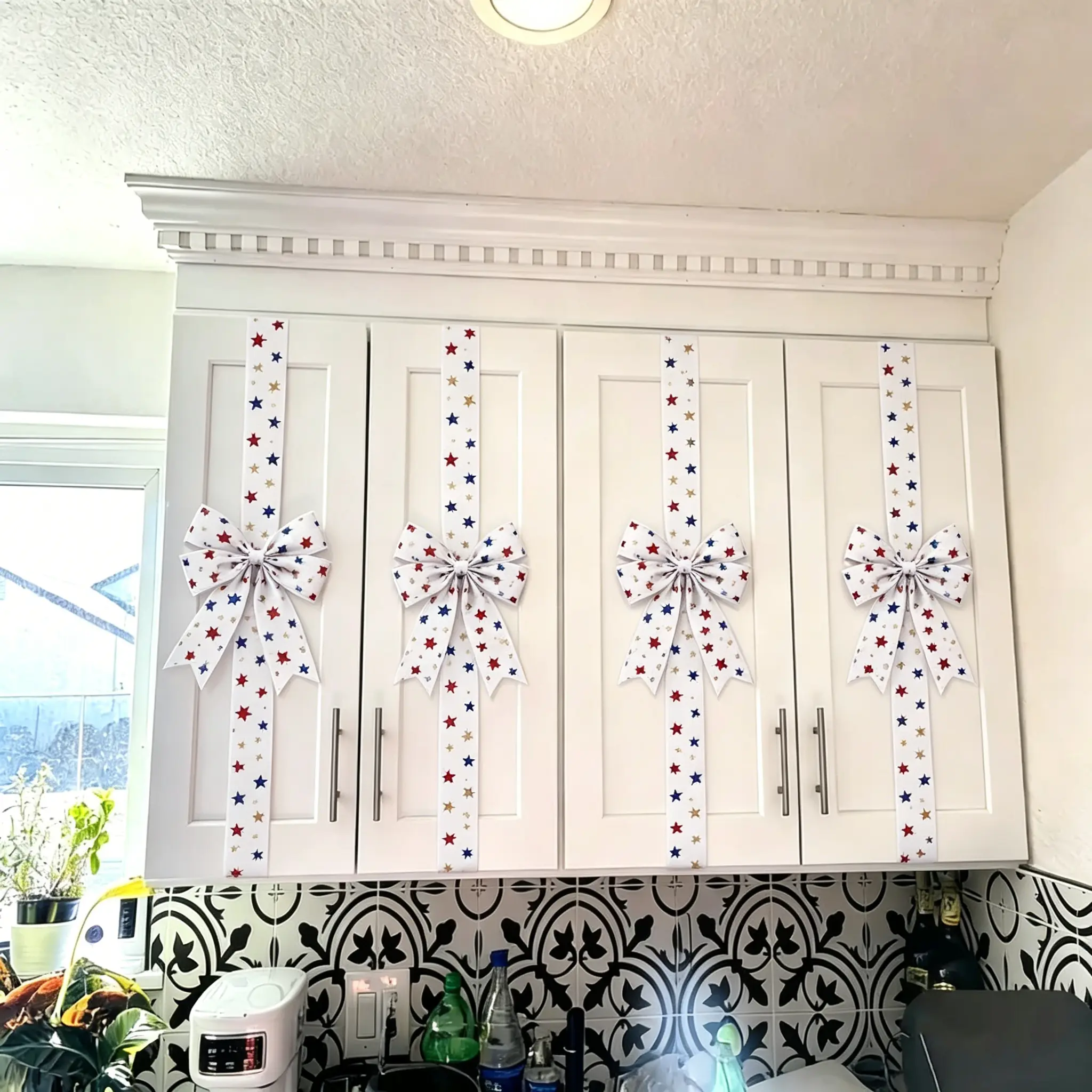 Ideal for adding a warm, patriotic accent to your kitchen, living room, or entryway, this bow wreath blends classic design with festive charm, making it a must-have decoration for honoring Memorial Day and celebrating Independence Day in your home.