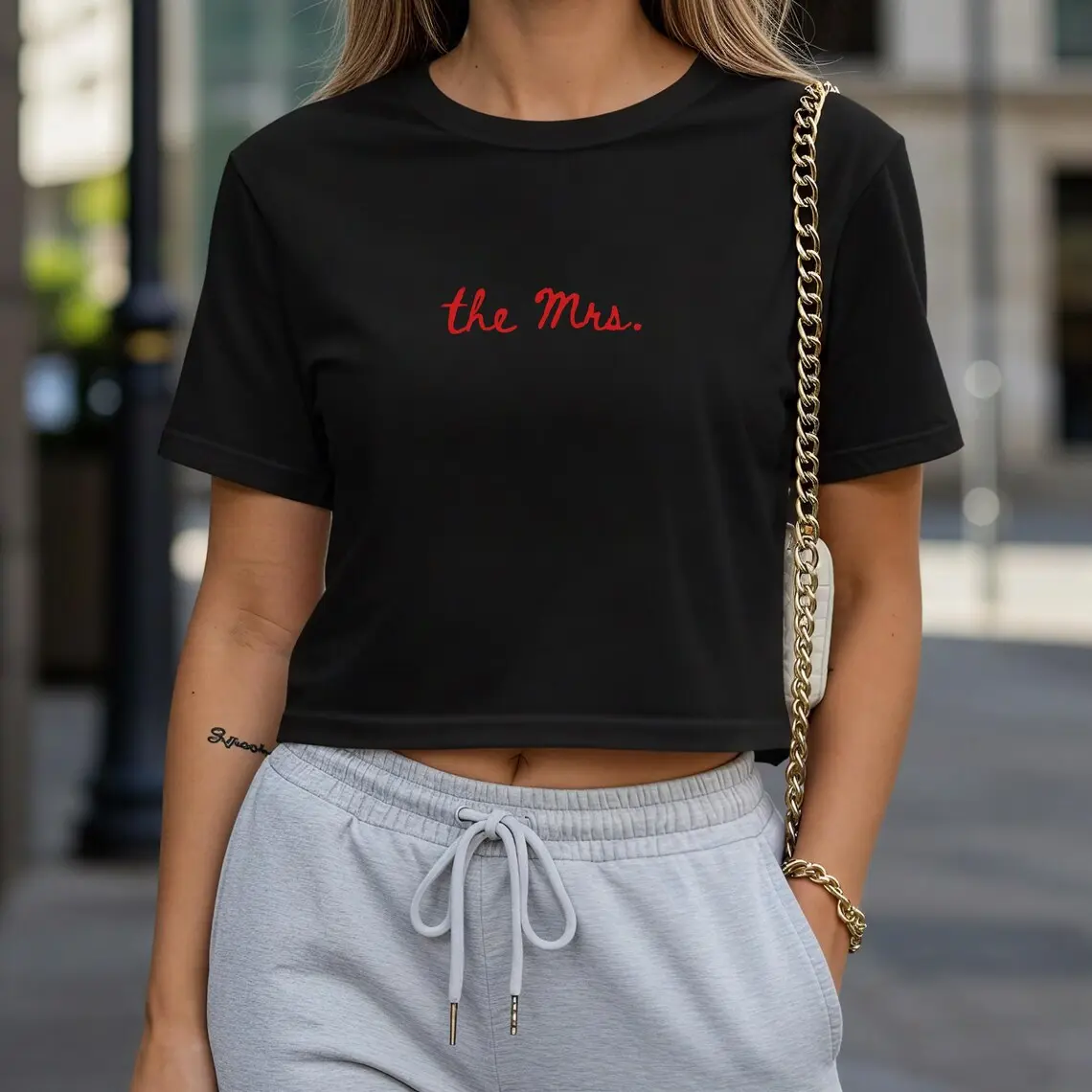 The Mrs Crop Top, Custom Bride Baby Tee, Wedding Gift for Wifey, Newlywed Tee, Bridal Shower Gift, Honeymoon Crop Top,Bachelorette Party Tee
