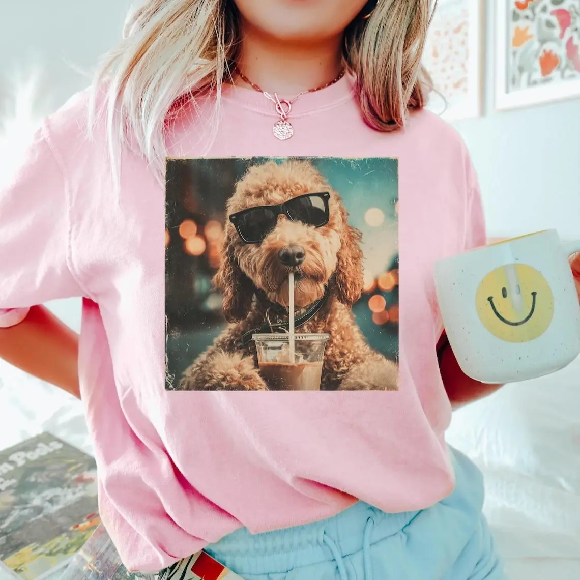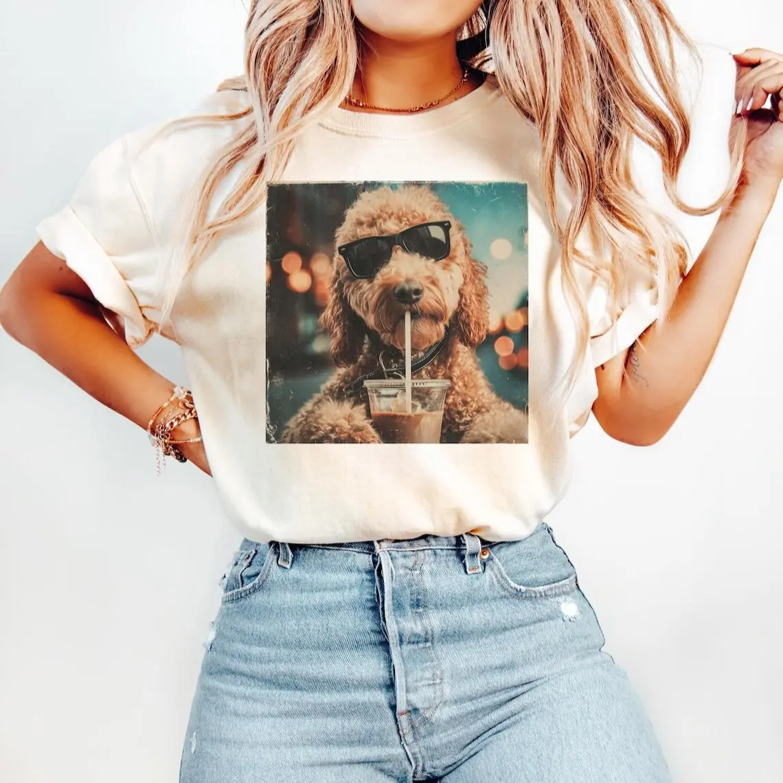 Funny Goldendoodle Drinking Iced Coffee T-Shirt, Dog Owner Gift, Dog Meme Graphic Tee, Coffee Dog Shirt, Gift For Animal Lover, Funny Dog Shirt