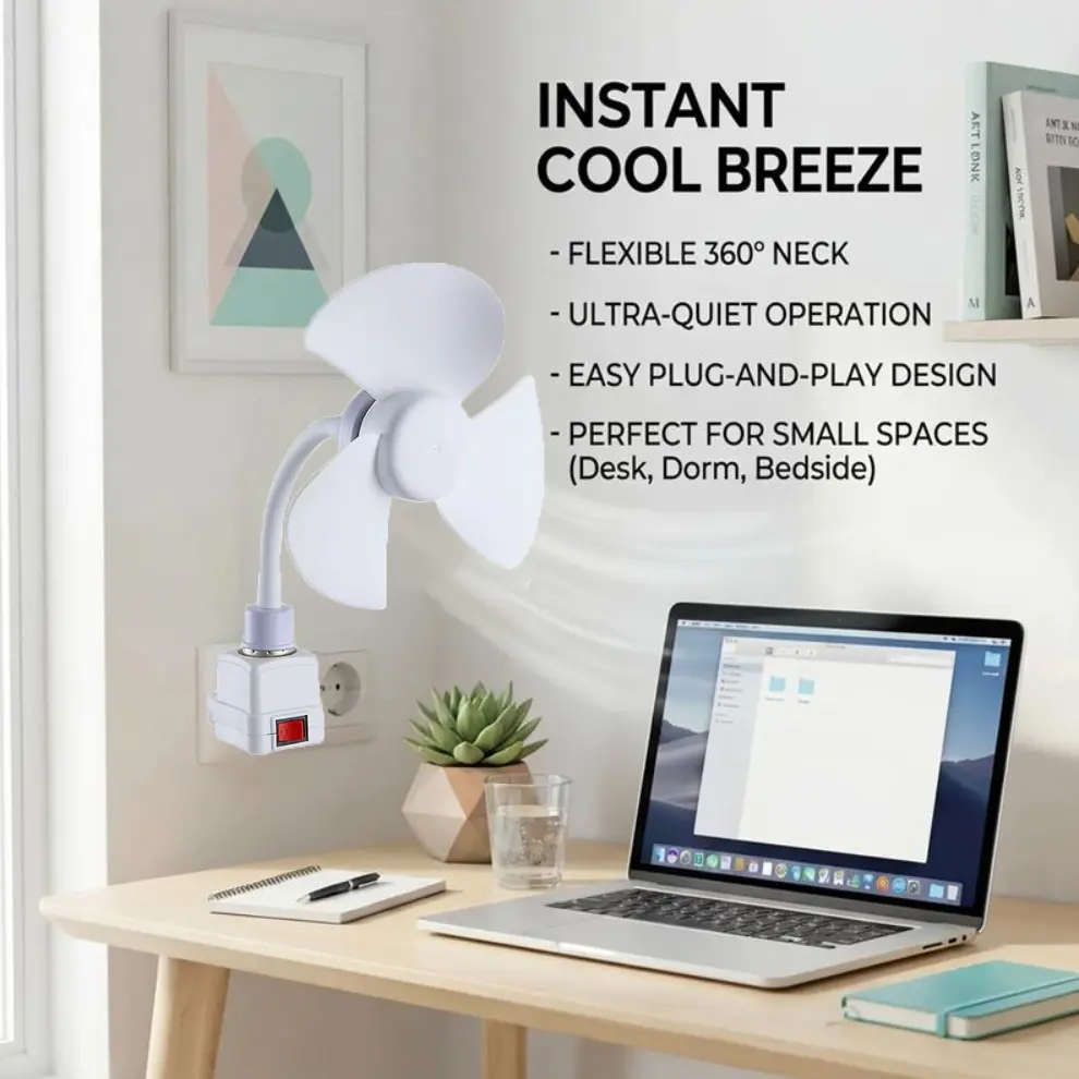 E27 Socket Fan Kit with Plug Adapter – Mini Quiet Electric Fan with Flexible Gooseneck Plug and Light Bulb Base, Energy-Saving Desk Fan for Kitchen, Bathroom, Dormitory, Office minidesk sleep system modern work 360 ice rhinestone multifunctional personal