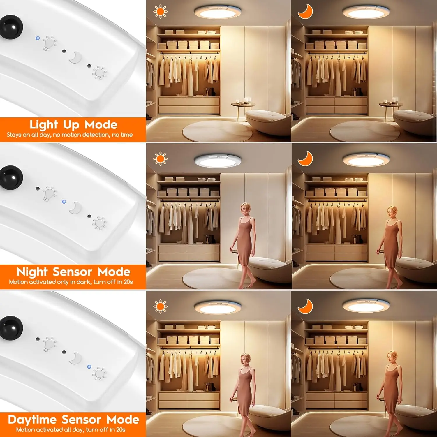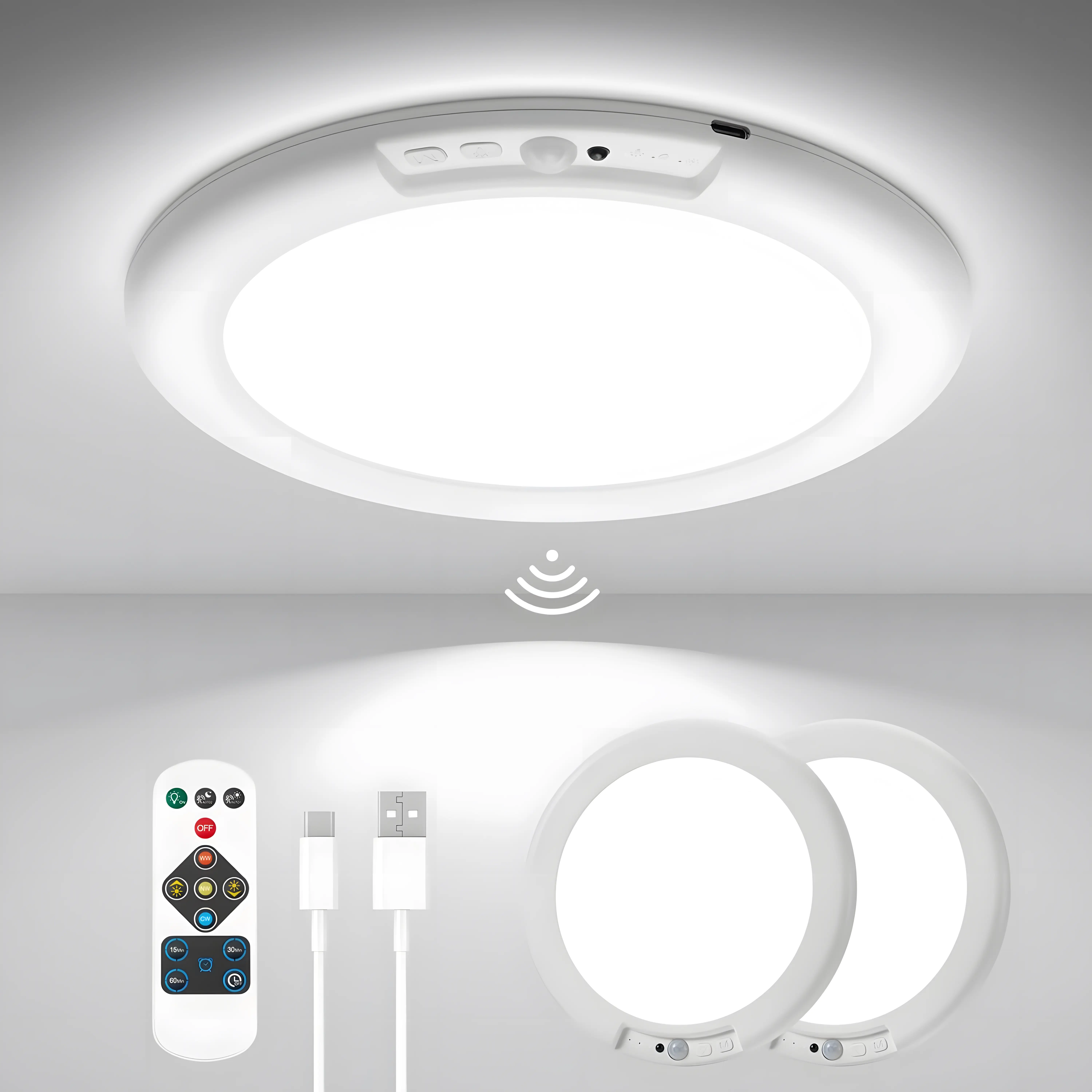 Rechargeable Motion Sensor Ceiling Light with Remote 4000mAh Battery Magnetic Wireless LED Light Dimmable 3 Color Temperatures for Closet Shower Stairs Shed Hallway Porch