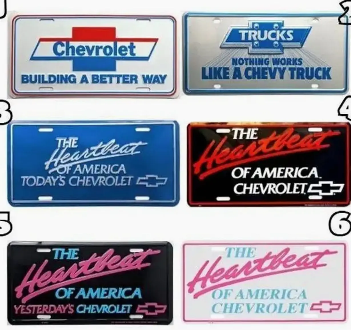 Chevrolet Heartbeat License Plate Collection – Retro Car Tag Set, Vintage GM Truck Accessories, Gift for Him – Lightweight Aluminum, Easy Install