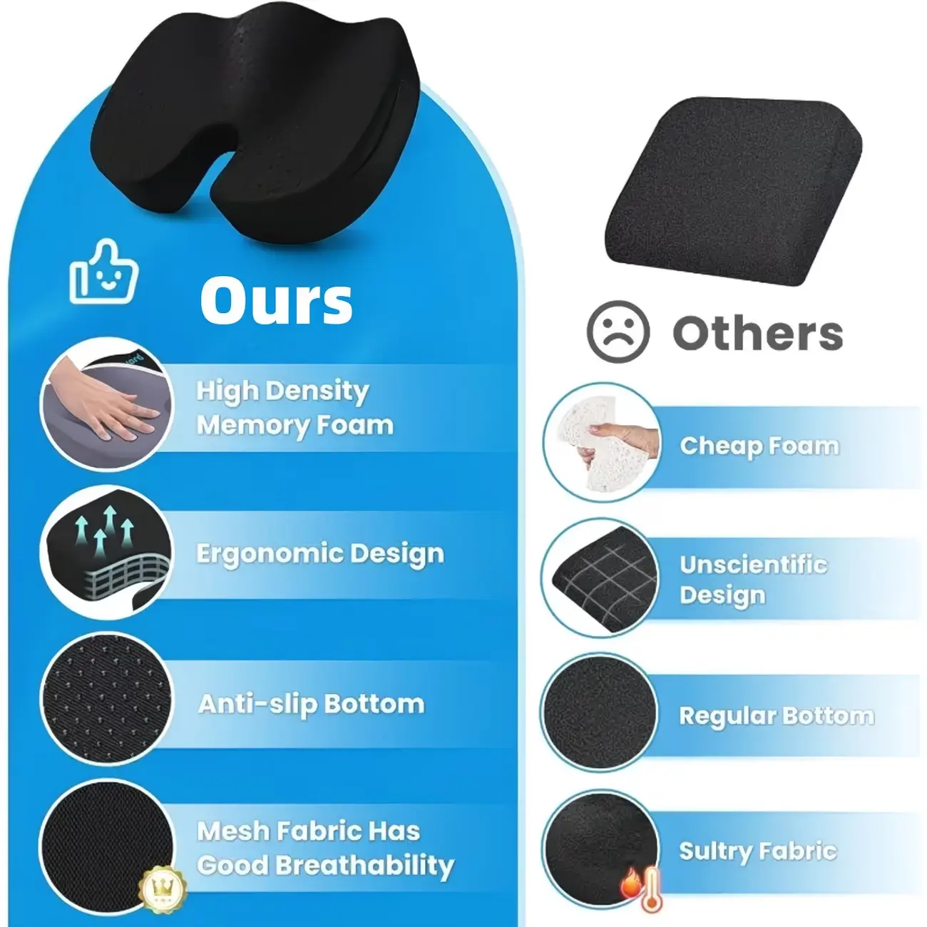 【PAIN RELIEF】Ergonomic "U" shaped hollow design adapt to your curves, for superior comfort and effectively support the coccyx & hip. Relieve pressure and fatigue caused by sitting for long periods.
