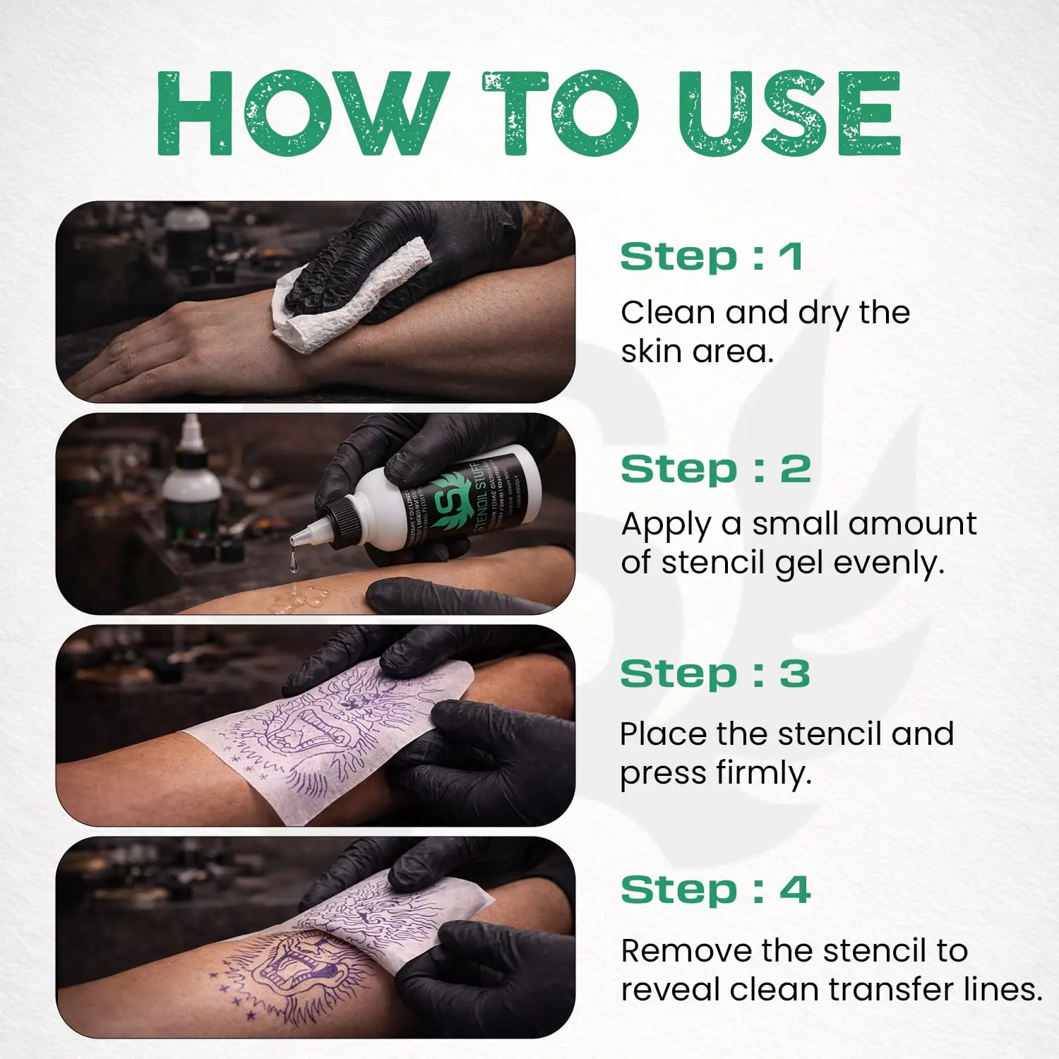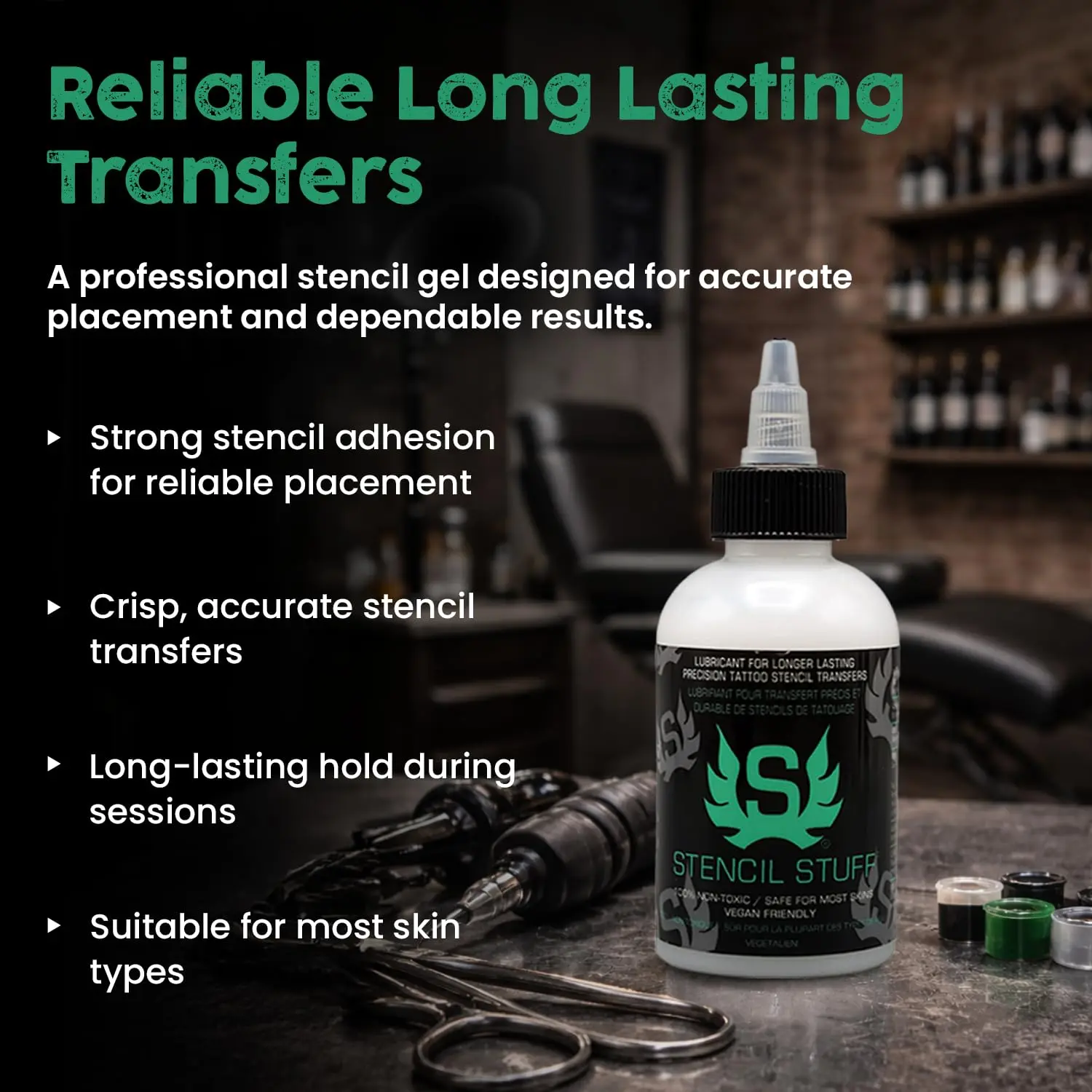 Tattoo Stencil Transfer Gel – 4oz Tattoo Stencil Transfer Solution – Vegan-Friendly Stencil Gel – Fast-Drying and Long-Lasting – Clean and Easy Application