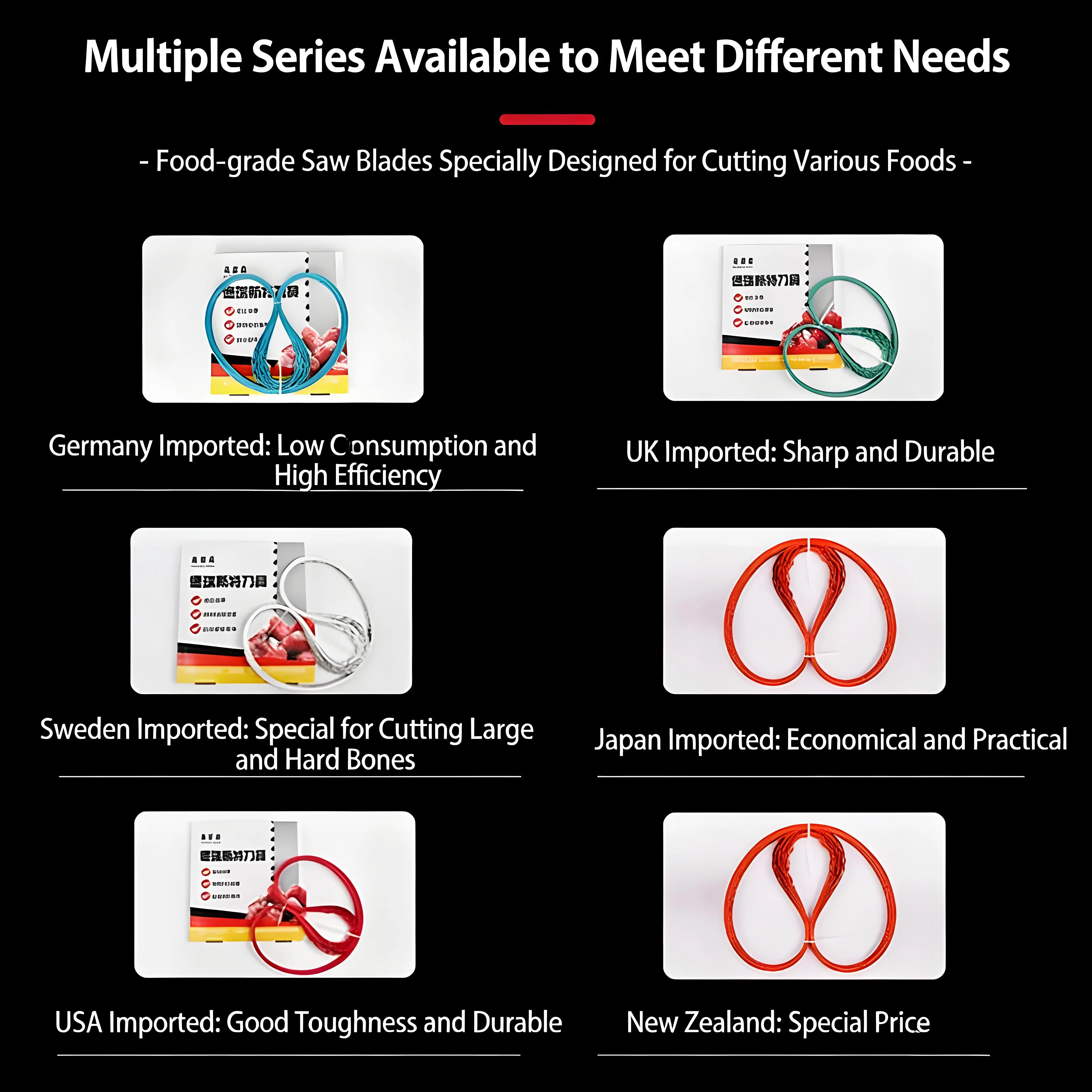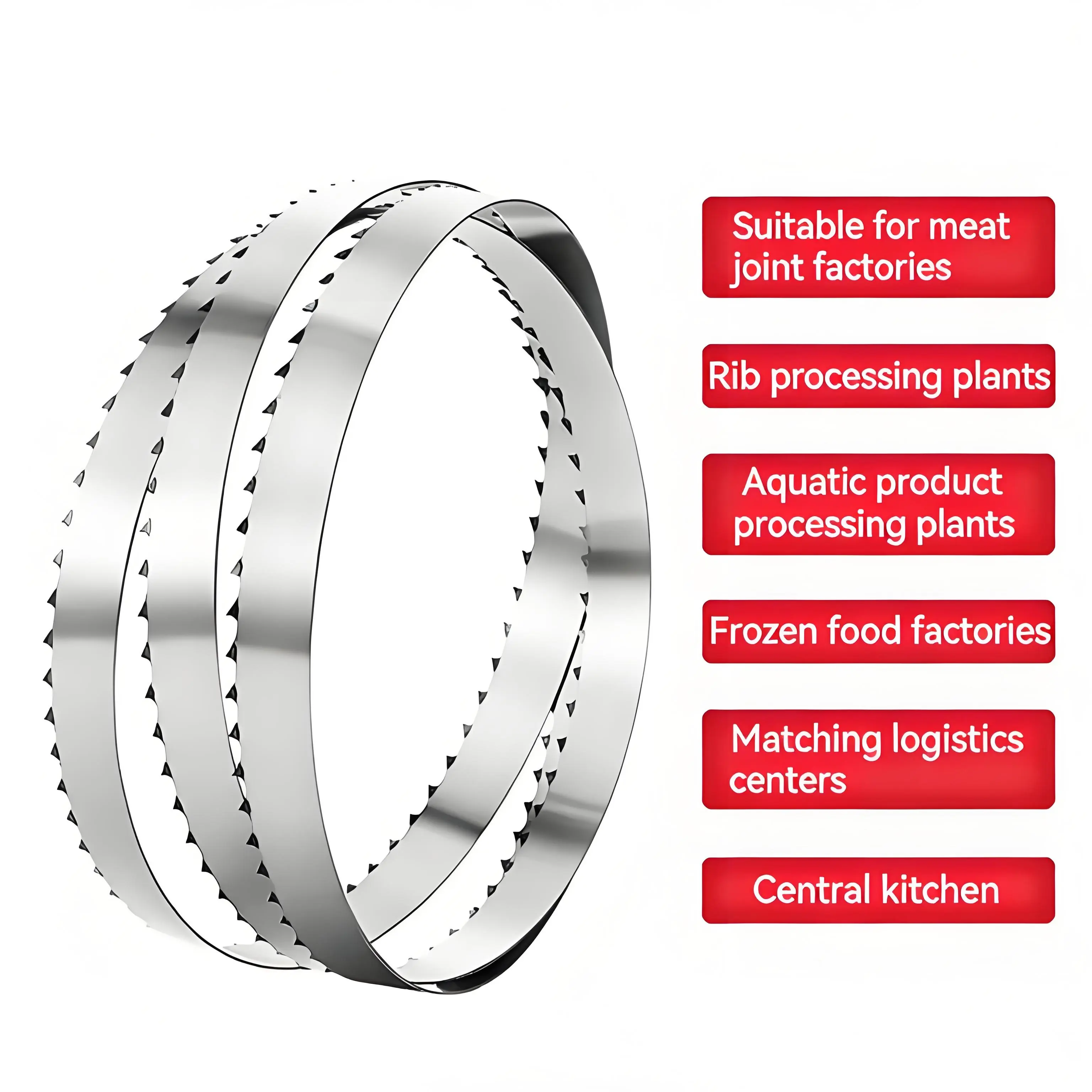 They are widely used for cutting metal, wood, aluminum profiles, bone and other materials, suitable for industrial band saw machines, processing workshops, food processing factories, butcher shops and various production scenarios.