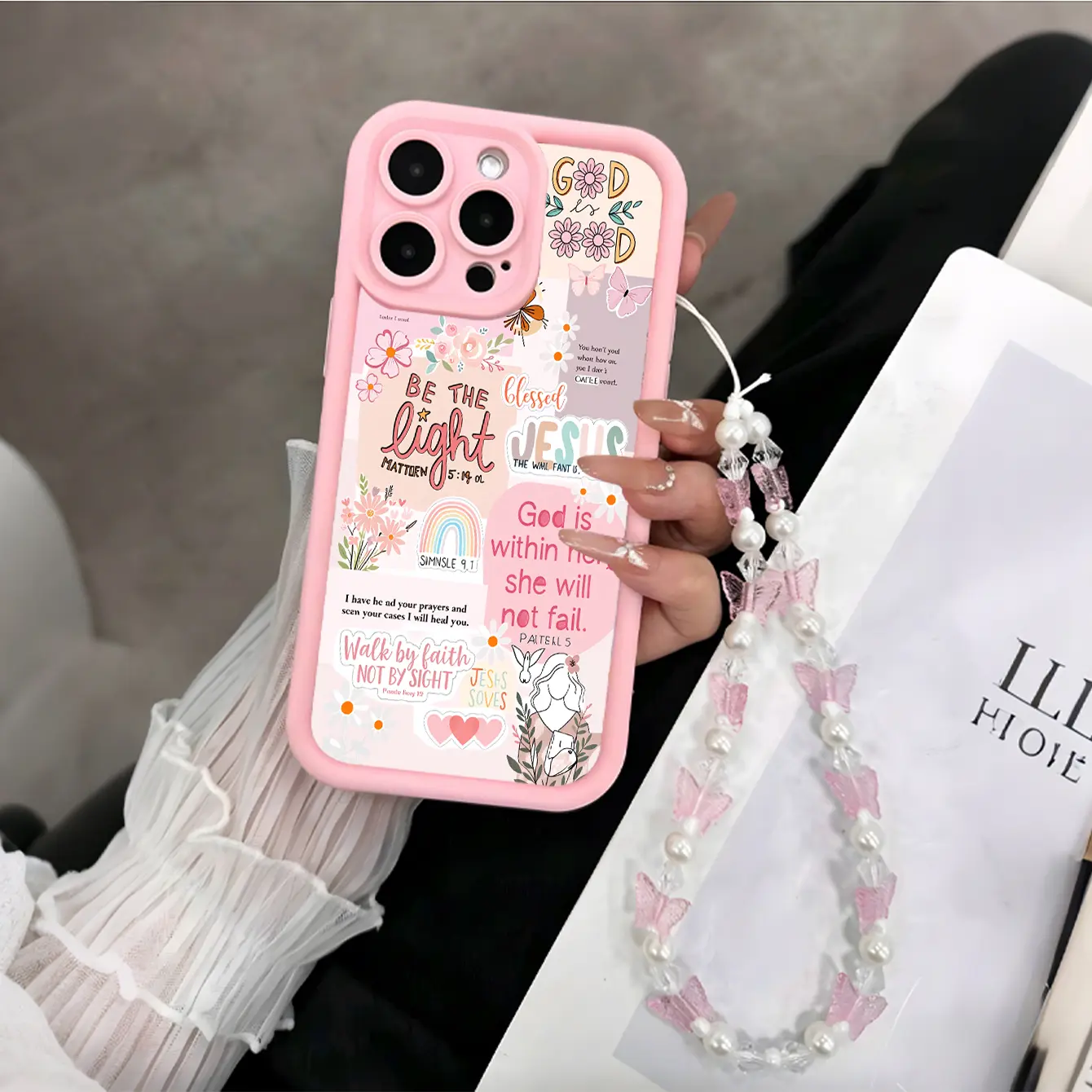 Bible Patch UV Print Phone Case with Butterfly Beaded Wrist Strap, Fits iPhone 17-11 Pro Pro Max Plus, Trendy Gift