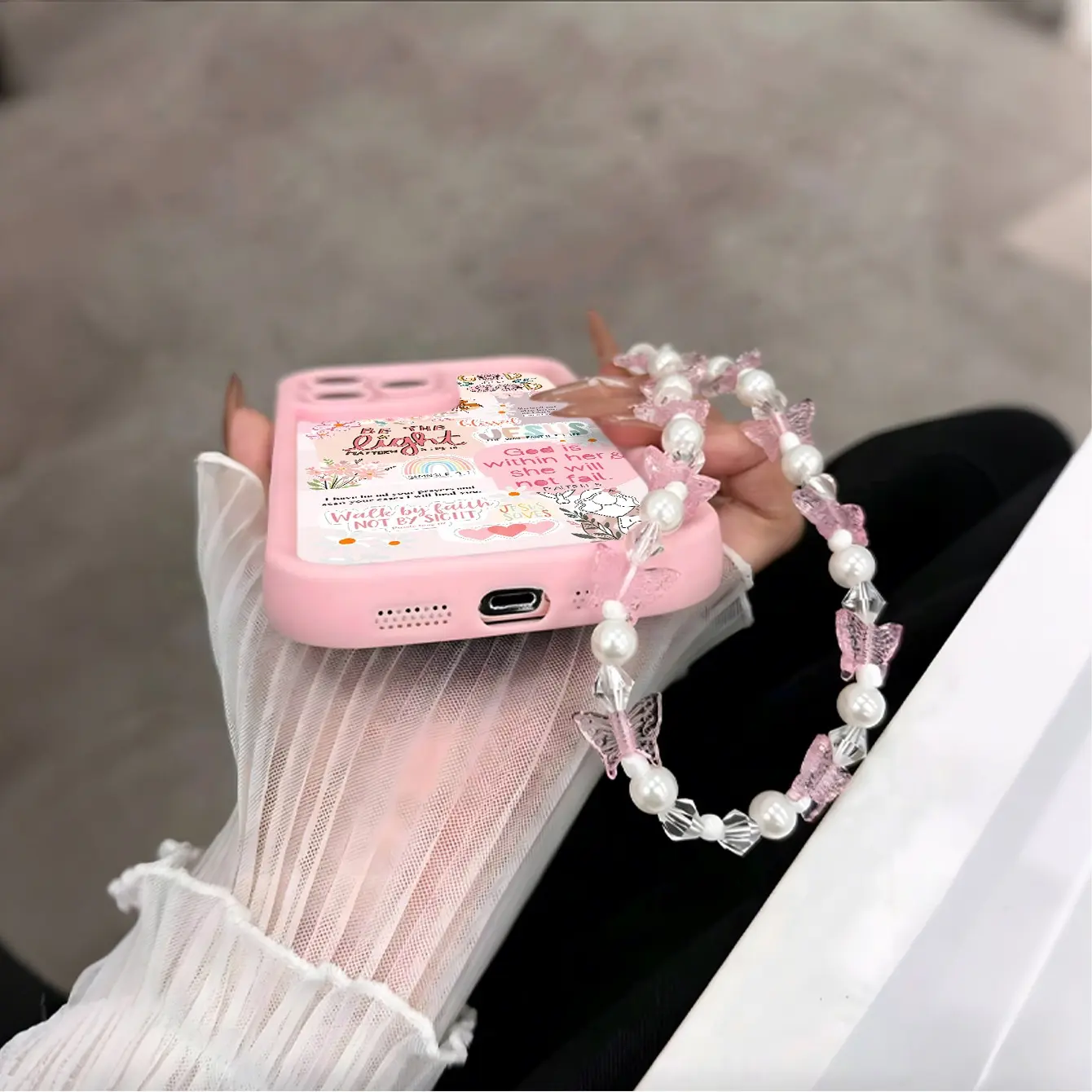 【Butterfly Charm】: Includes a pink butterfly beaded wrist strap for added charm and convenience.