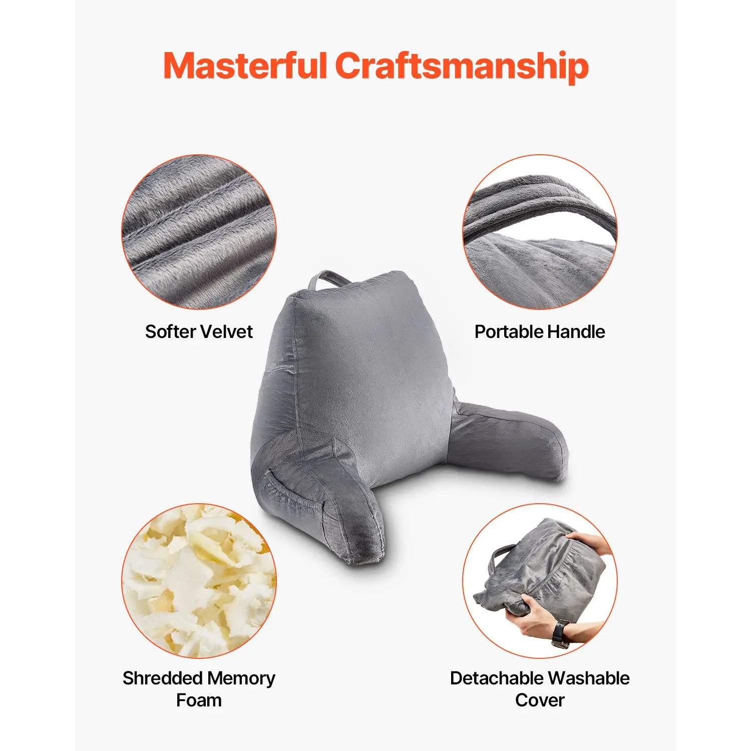 Portable Carrying Handle: Equipped with handy handle, it's easy to carry to any room or sofa, letting you enjoy the comfort of your reading pillow anytime, anywhere.