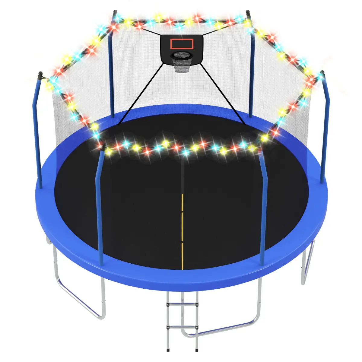 ·Rust-resistant material ensures long-lasting outdoor use and durability.#14FTTrampoline #TrampolineWithLights #OutdoorFamilyTrampoline #1500LBSCapacity #SafeKidsTrampoline
