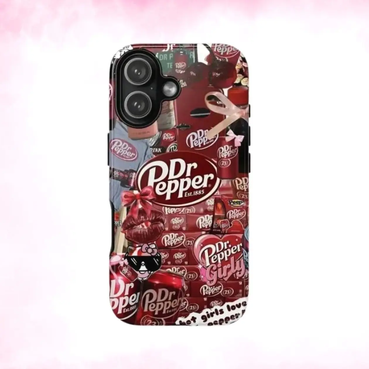 Coquette Dr Pepper Pink Bow iPhone Case – Tough Double Layer Protective Cover, Gift for Fans