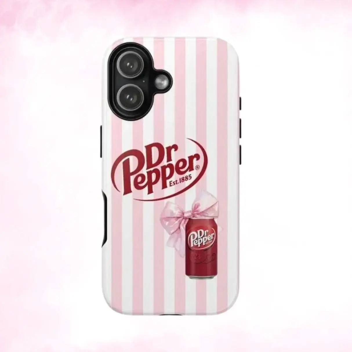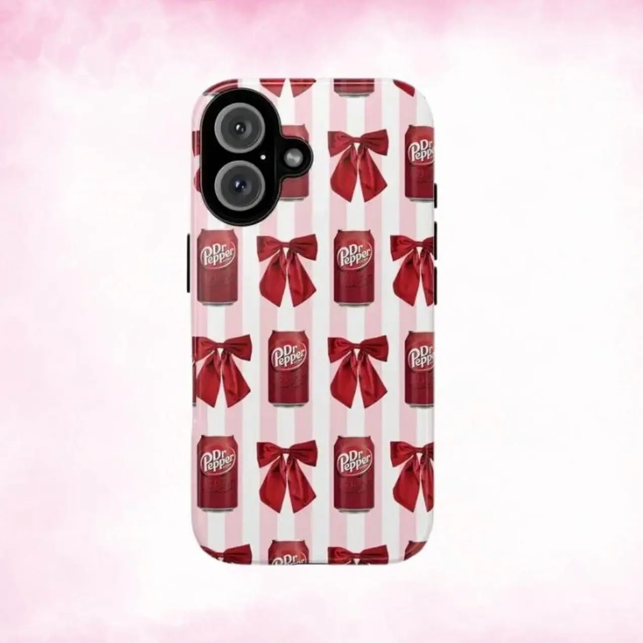 5. Coquette Dr Pepper Pink Bow iPhone Case – Tough Double Layer Protective Cover, Gift for Fans
