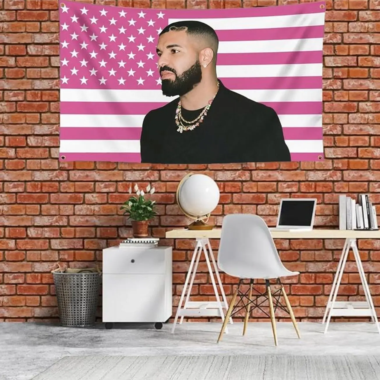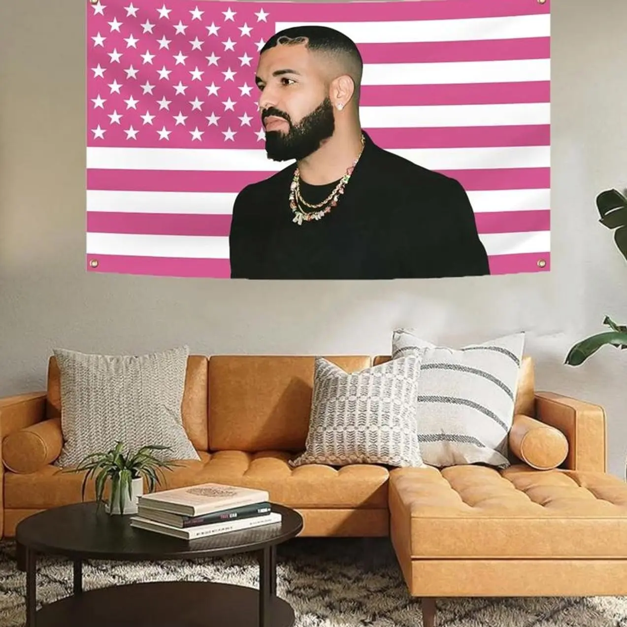 5. Drake 3x5Ft Pink Music Art Flags Wall Hanging Tapestry for Man Cave College Dorm Room Decoration Outdoor Funny Party Banner