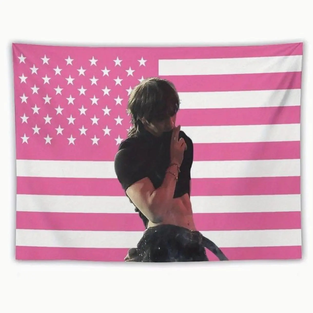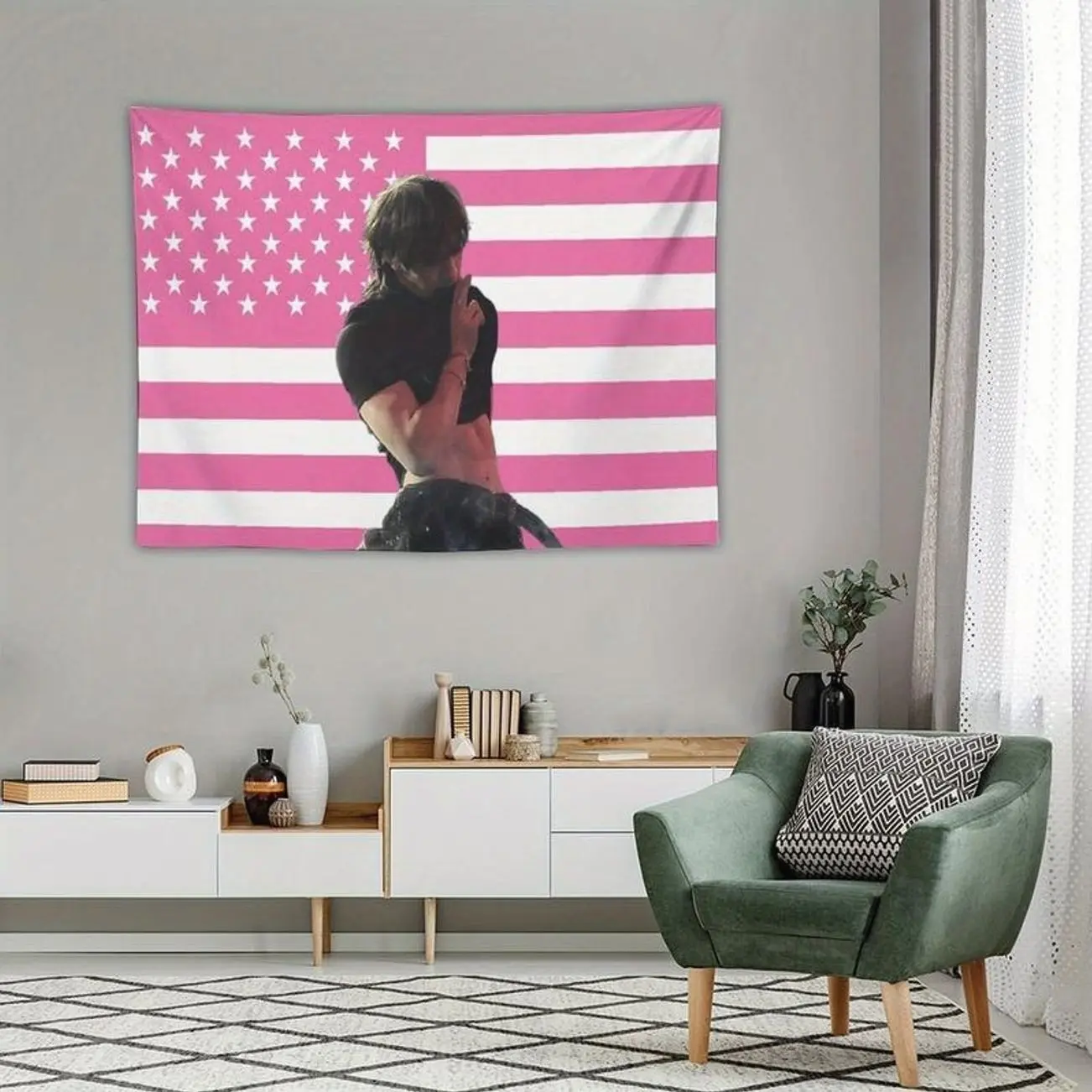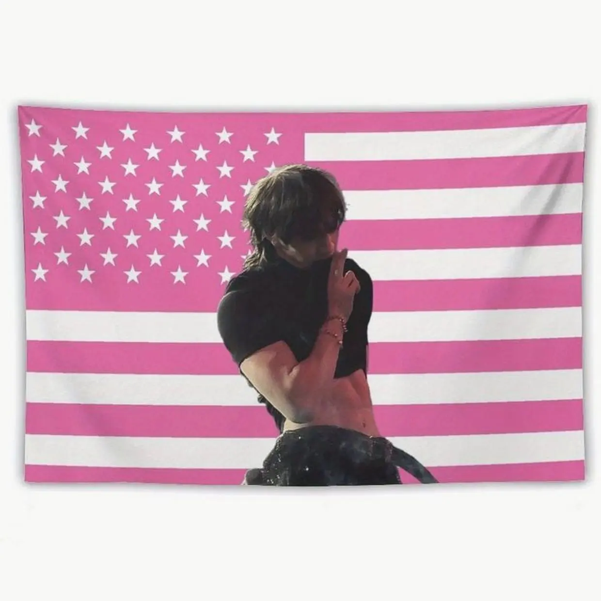 Pink And White American Flag Wall Hanging, Bang Chan Themed Tapestry,unique gift