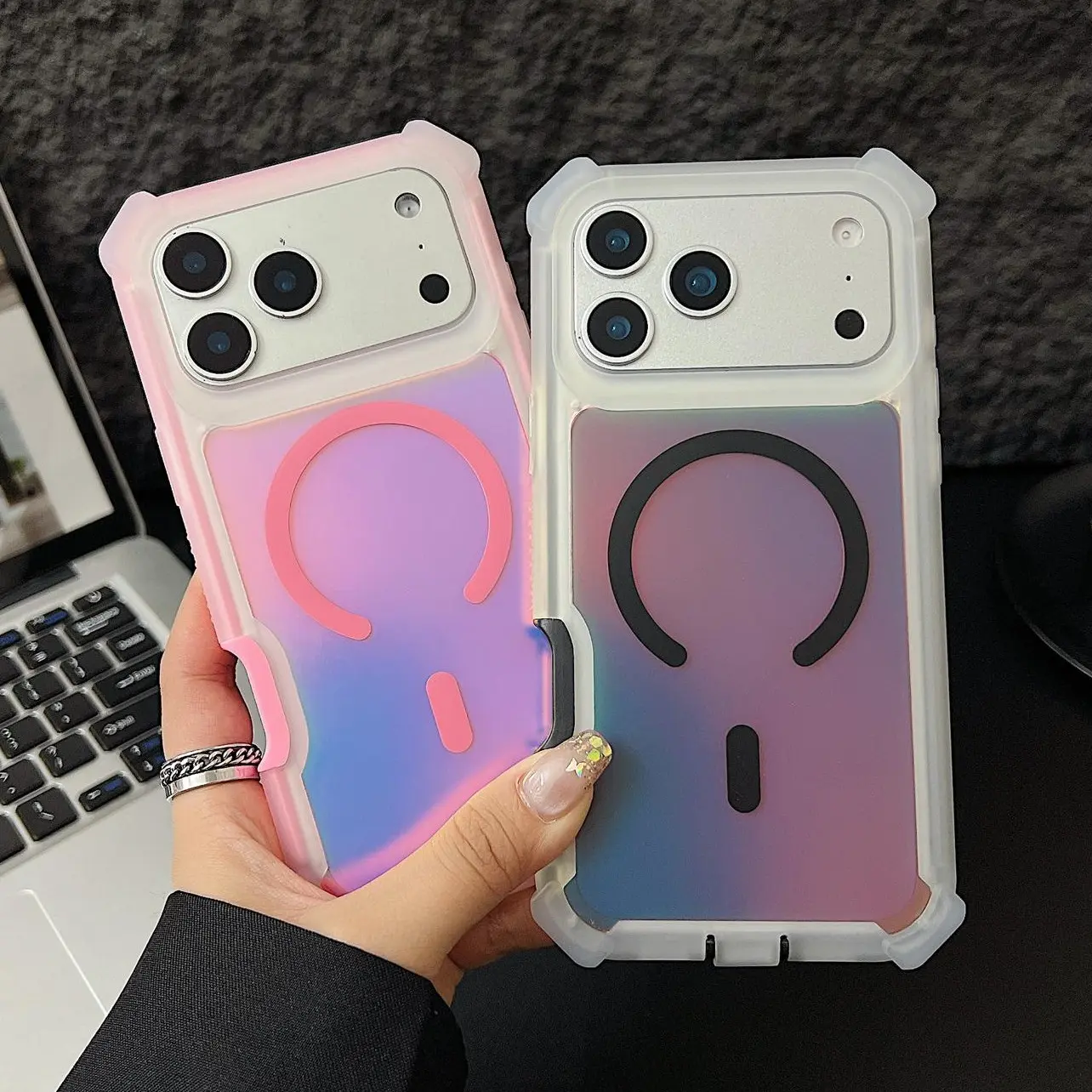 HOTSIAD Iridescent Laser Fluorescent Cute Phone Case [MagSafe Compatible] Shockproof Anti-Slip Anti-Scratch Drop Protection Case for iPhone 17 16 Pro Max 15 14 13 Pro Max