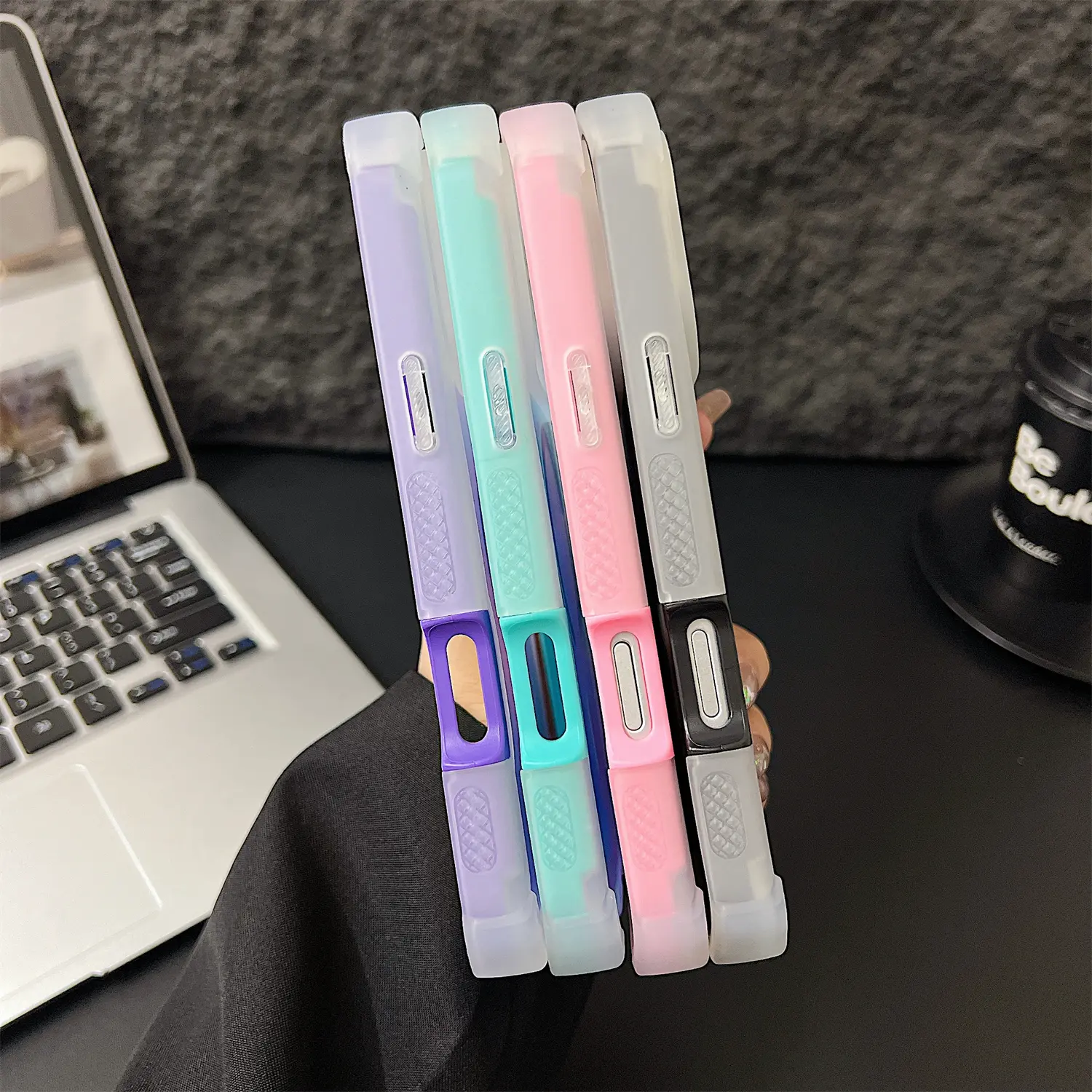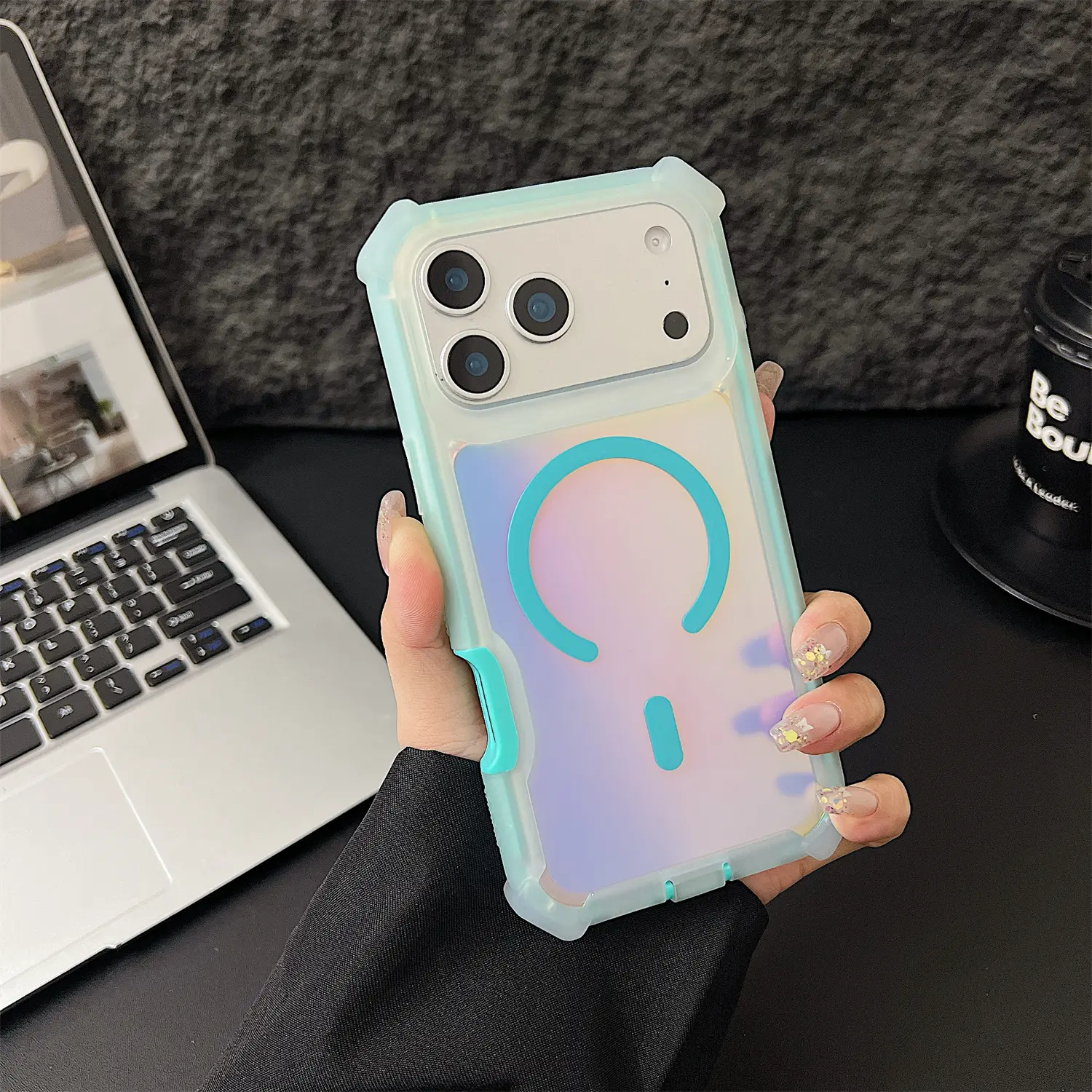【Skin-Friendly Backplane】The back of the case is crafted with Translucent Fluorescent Laser, which feels smooth and non-slip in your hand. Unlike glossy surfaces that attract fingerprints and smudges, this matte texture stays clean with minimal wiping, while its soft tactile sensation enhances holding comfort for long periods.