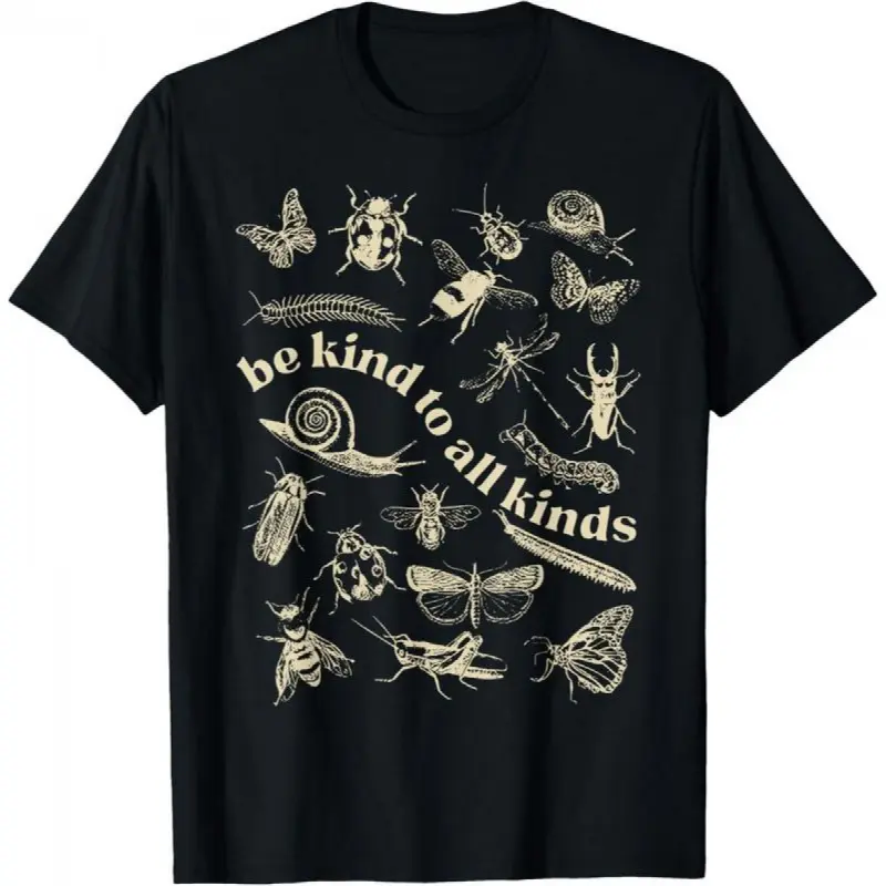 This vintage-style unisex short sleeve T-shirt features a unique "Be Kind To All Kinds Bugs" graphic design, perfect for entomology enthusiasts, bug lovers, and anyone who appreciates nature and kindness. The classic crewneck and relaxed regular fit make it suitable for both men and women, offering a comfortable and versatile casual look for everyday wear. The lightweight, smooth, and breathable fabric ensures all-day comfort, ideal for outdoor activities, nature walks, school, casual hangouts, weekend trips, or simply relaxing at home. The high-quality vintage print is durable and long-lasting, maintaining its clarity and color even after frequent washing. This shirt easily pairs with jeans, shorts, cargo pants, jackets, and casual bottoms to create a laid-back, stylish outfit. It is a great gift for entomologists, biology students, nature lovers, bug collectors, and anyone who wants to spread positivity and love for all living creatures. Whether for daily casual wear or special nature-themed occasions, this short sleeve tee combines personality, comfort, and meaningful design in one essential wardrobe piece.