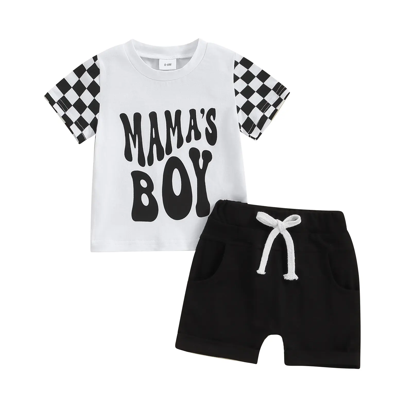 Toddler Boys Summer Outfits Letter Print Checkerboard Short Sleeve T-Shirts Tops and Elastic Waist Shorts 2Pcs Clothes Set
