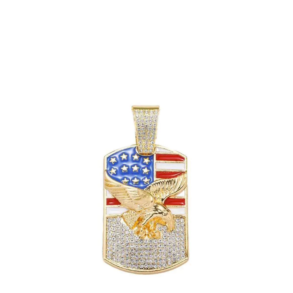 HIPHOP Jewelry Alloy Diamond Flag Eagle Pendant Necklace Men's Cuban Chain
