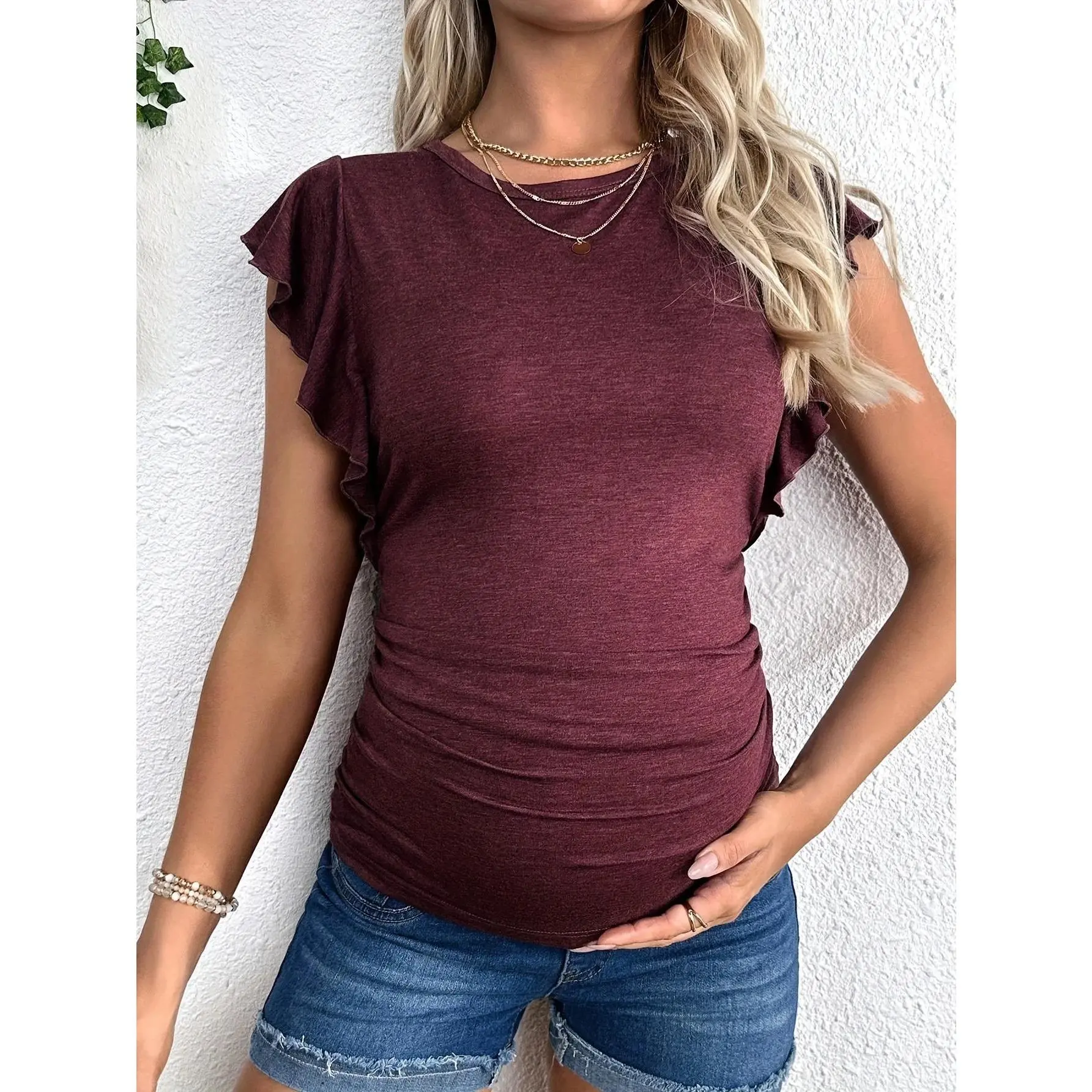 This t-shirt is specifically tailored for maternity wear. It provides the necessary comfort and style for your summer days. Pair it with your favorite jeans or shorts for a chic and relaxed look.