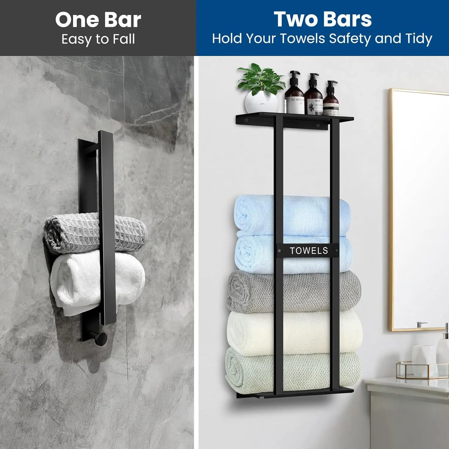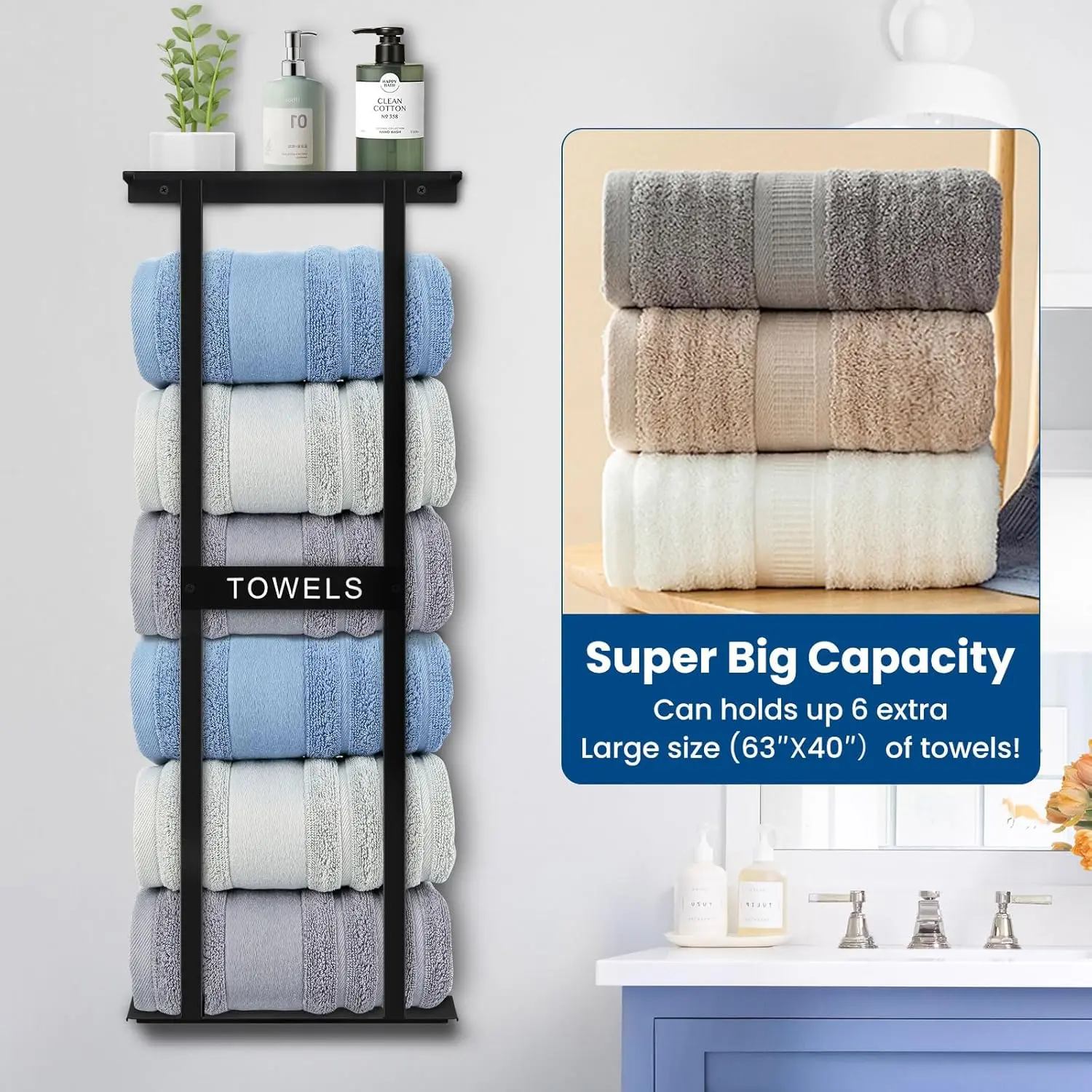 Optimize your bathroom space with this 31-inch wall-mounted towel rack designed to hold up to 6 large towels. Ideal for small bathrooms or spaces without linen closets.
