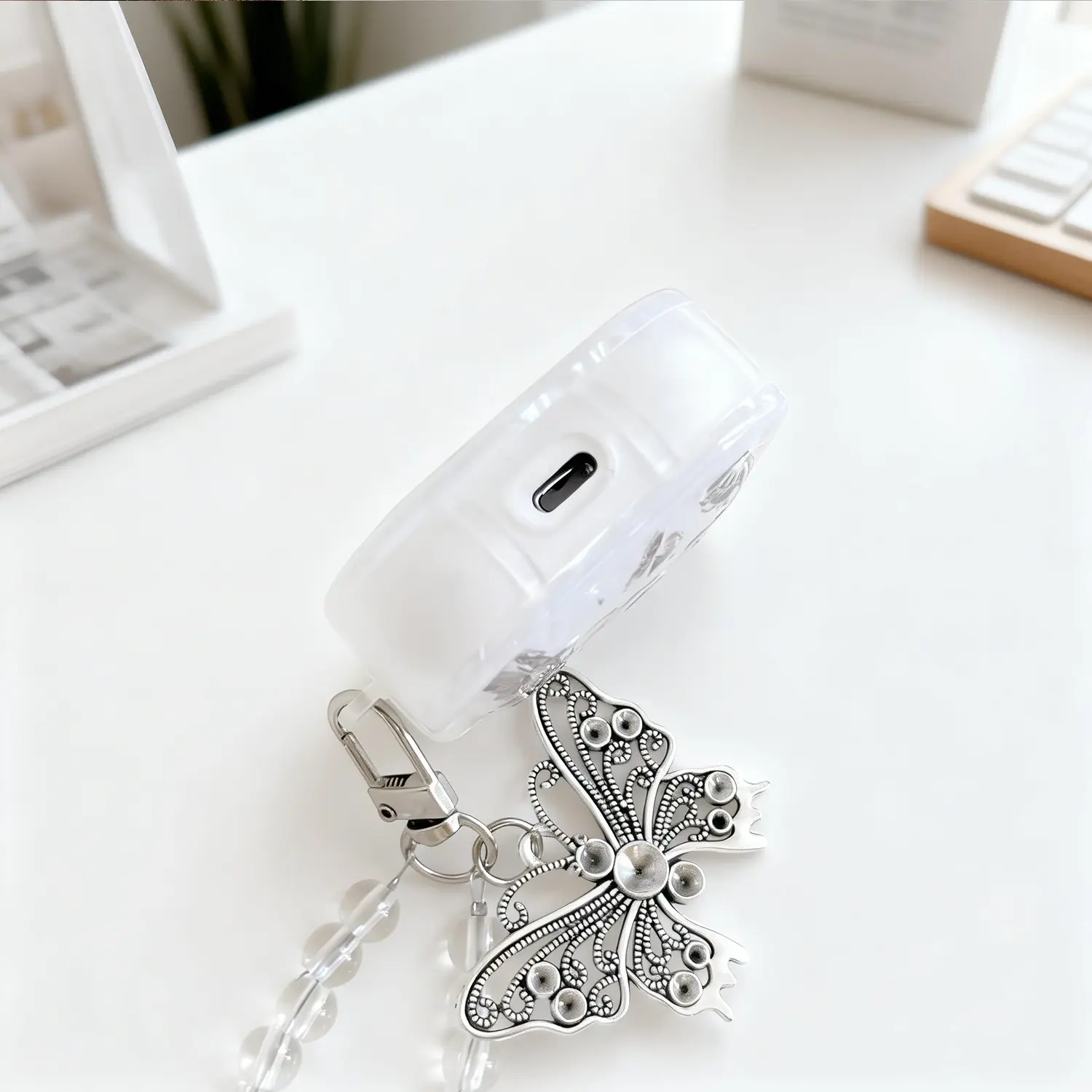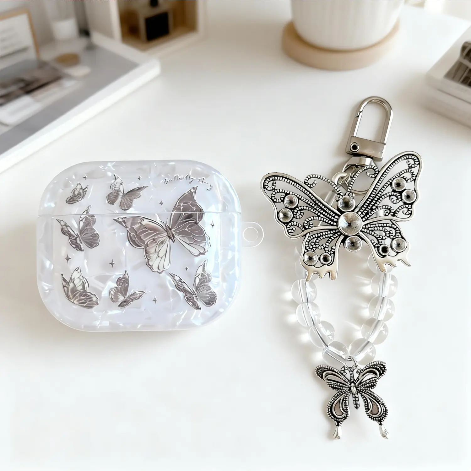 [Designed for Women & Girls]: The cute aesthetic case for Airpods comes with a delicate butterfly keychain, easy to attach onto a bag or packbag to prevent loss. More than a protective case, it's also a nice looking decoration, making it a thoughtful gift for daughters, girlfriends, wife, lovers, girls and women friends.