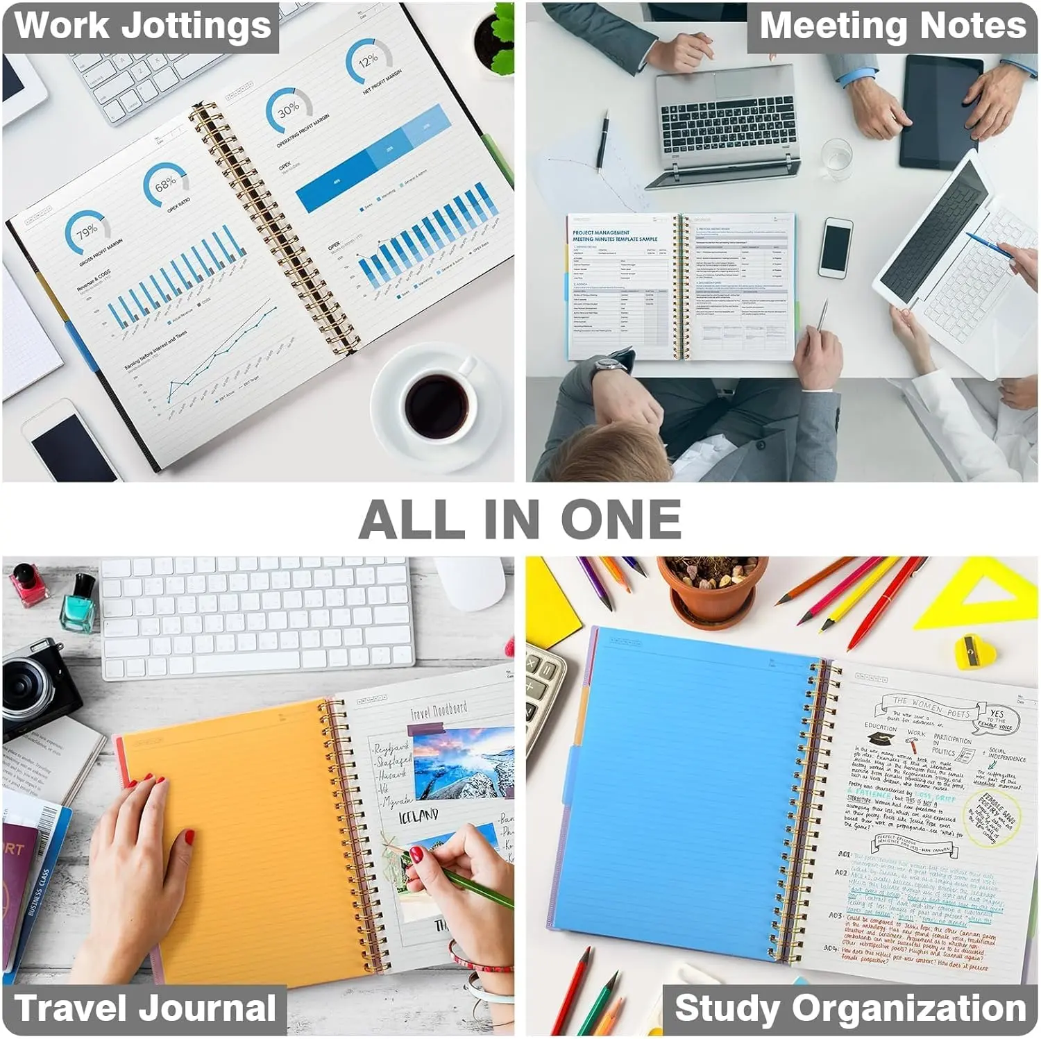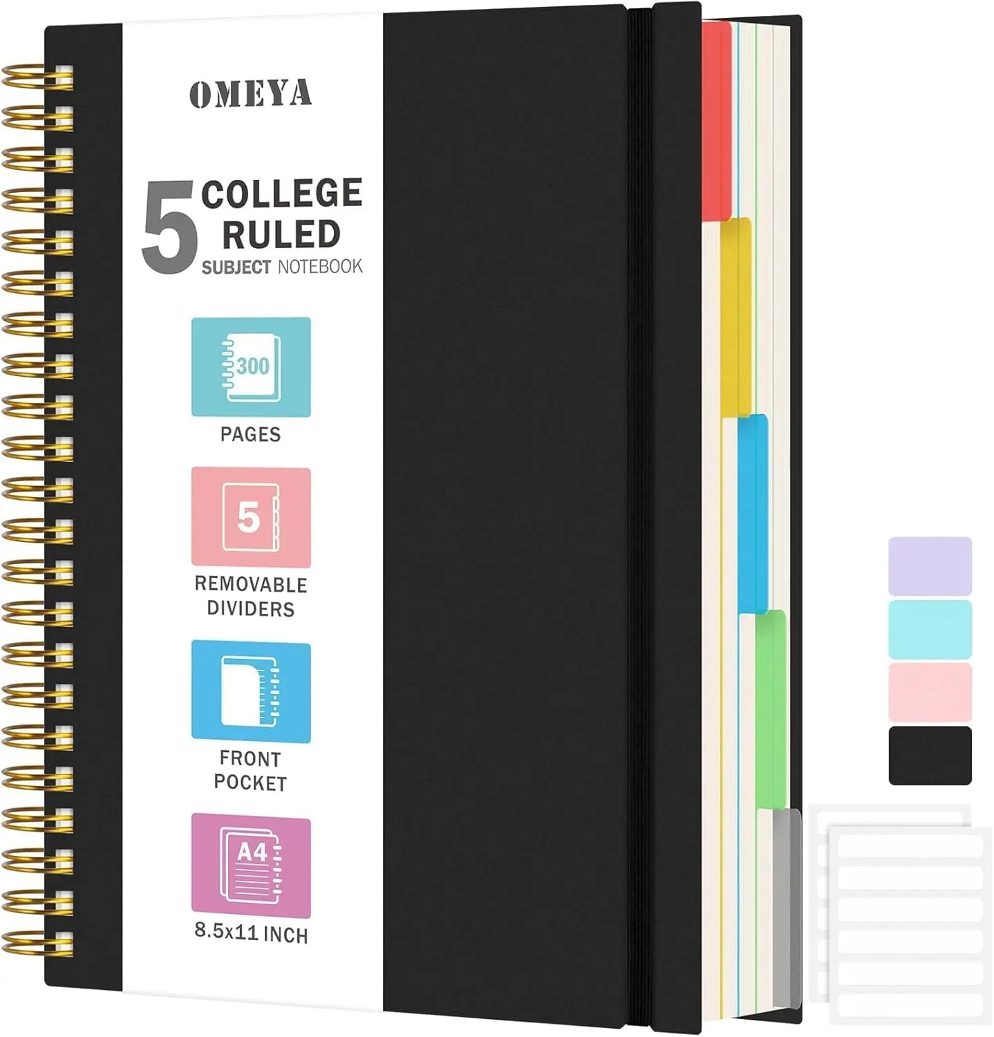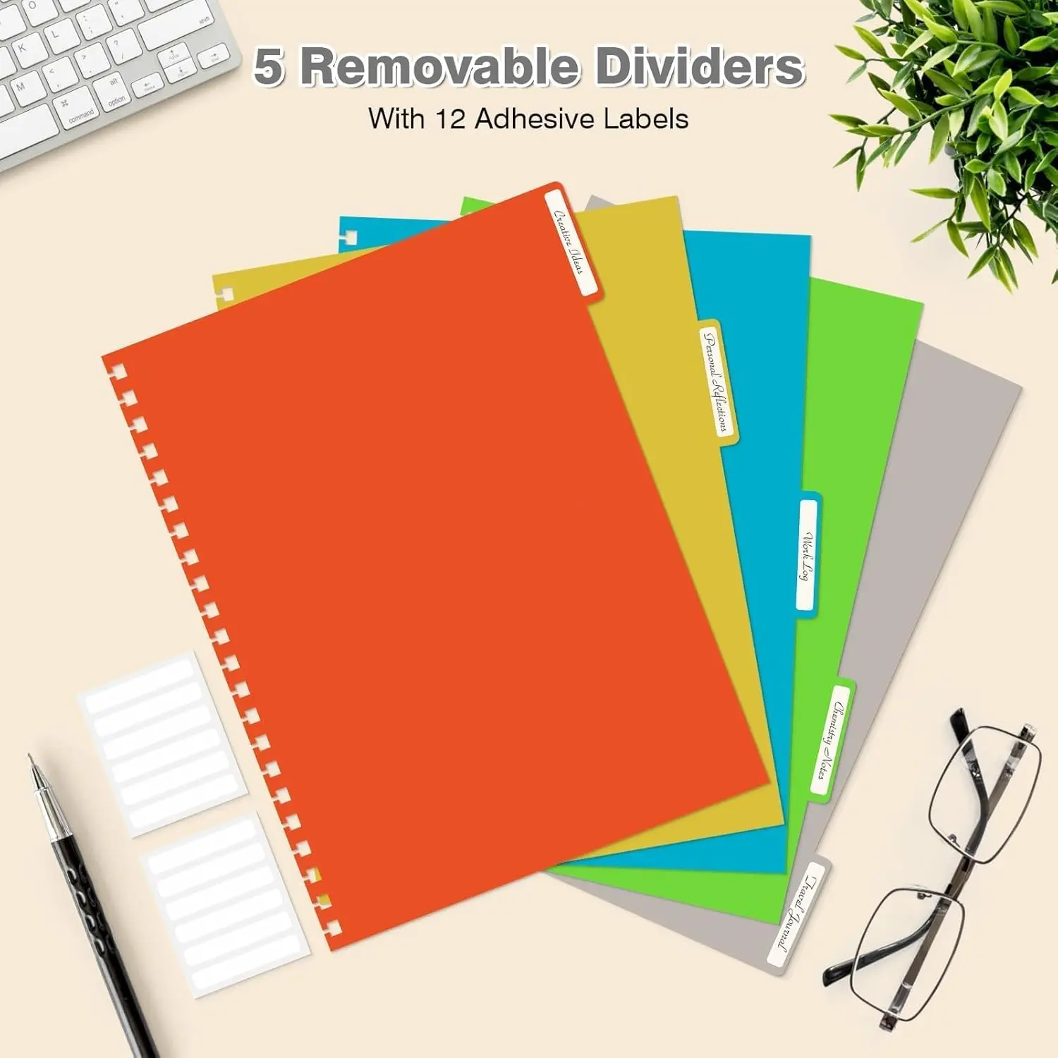 ·【1 Notebook Replaces 5 | Your Ultimate Desk Accessory for Office Supplies】Say goodbye to cluttered desks and 5+ bulky single notebooks! OMEYA 5 subject notebook comes with 5 removable colored dividers and 12 adhesive labels, letting you split your notebook into 5 distinct sections for an all-in-one organization solution.Streamline your school assignments, office worksheets, and business notes with just 1 slim notebook. The extra adhesive labels make categorization and quick referencing effortless, perfect for keeping your desk accessories and daily notes perfectly organized.