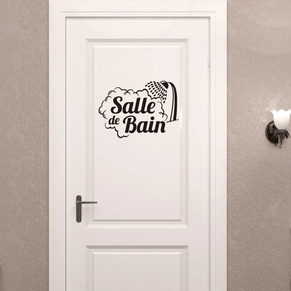 French Bathroom Door Wall Sticker, Flat Sticker for Shower Room, Home Decor Item, Universal Use, No Ca Prop 65, Ideal for Doors