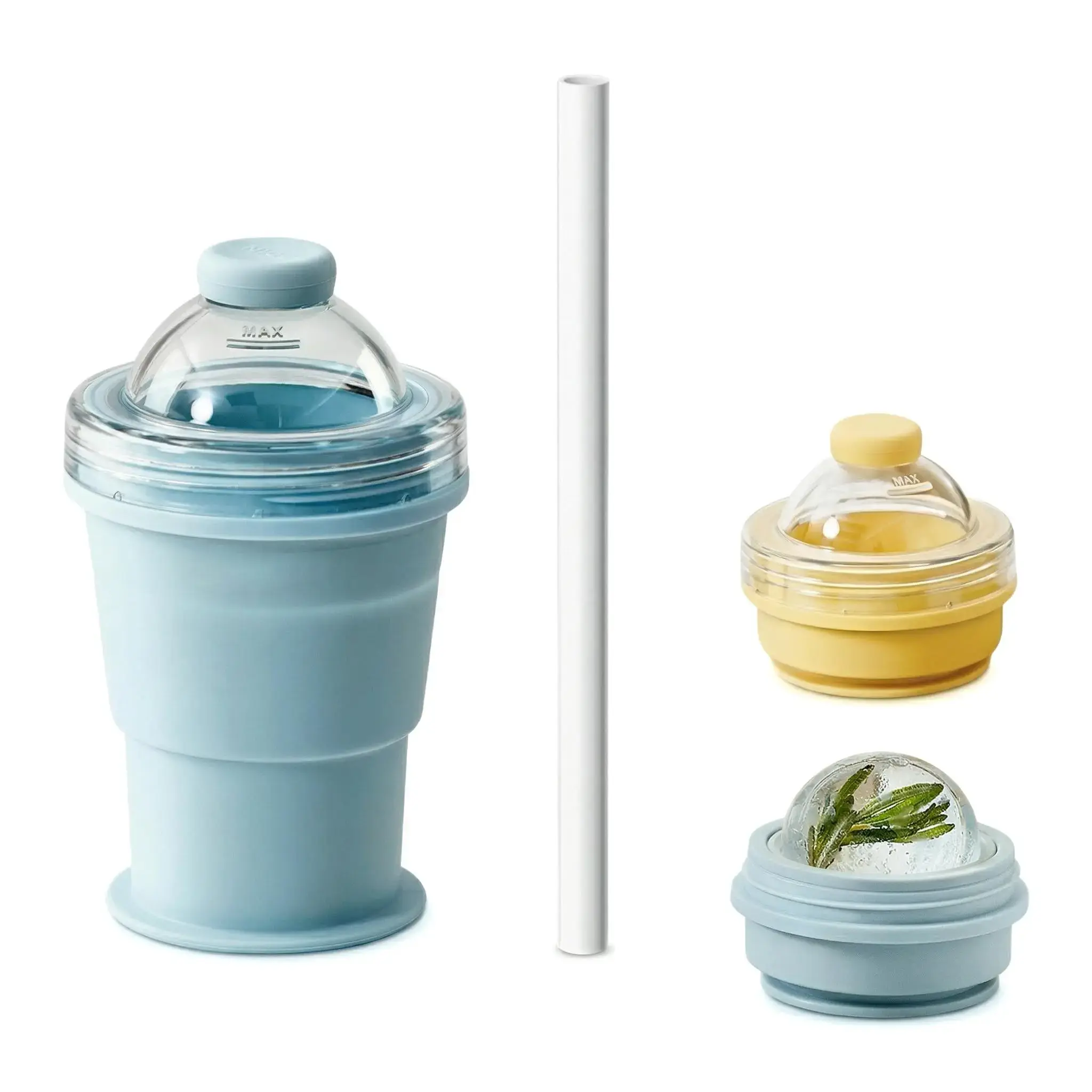 ·- Convenient Ice Making: Equipped with an ice ball holder and a detachable drinking straw cup, it features easy demolding; once frozen, simply pull out, and the perfect large ice balls are ready to go straight into the cup