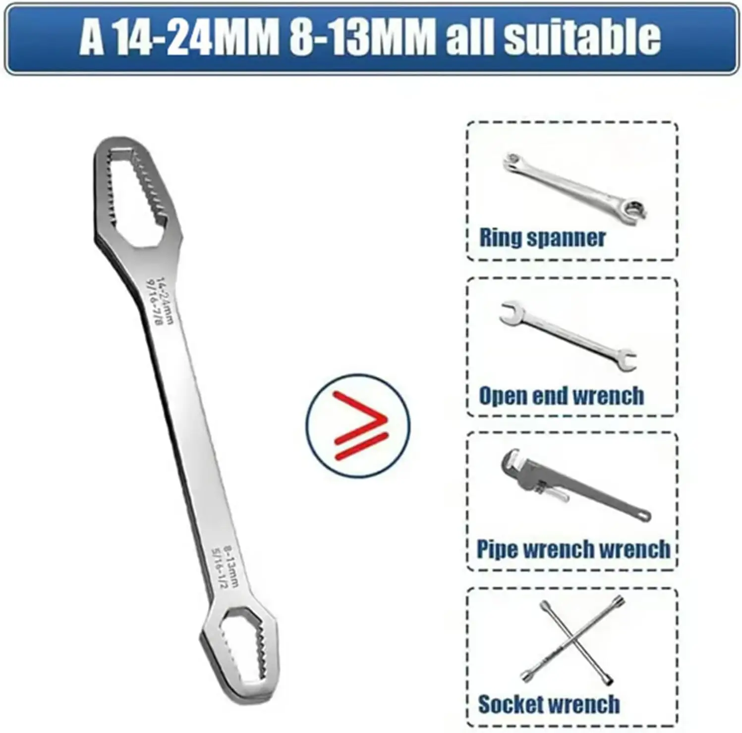·Double-Ended Convenience: The wrench features a self-tightening mechanism, ensuring a secure grip. Its double-headed design offers multifunctional use, making it a handy tool for various repair needs. 🔄
