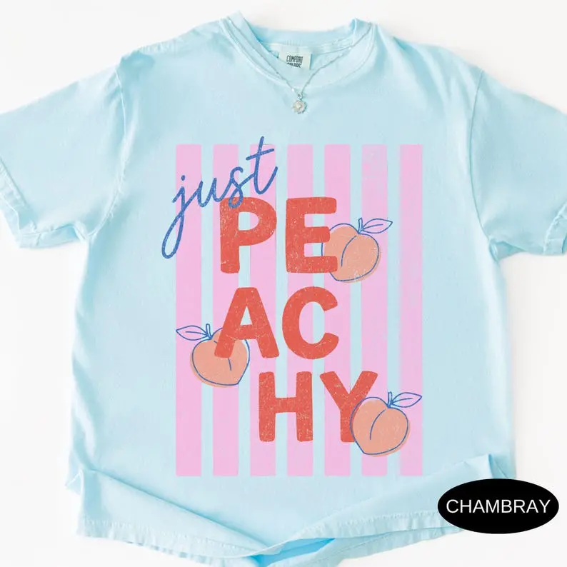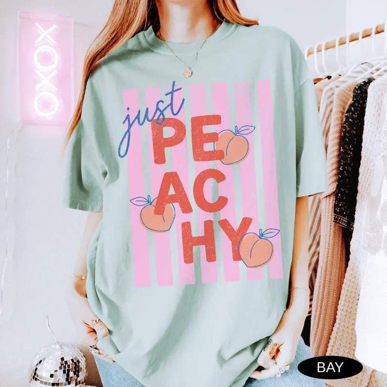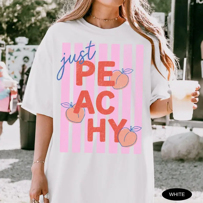 Comfort Colors Just Peachy Shirt Tee Summer Fruit Tshirt Food Pun T Shirt Retro Graphic Tee Peach Graphic Tee Summer T-Shirt