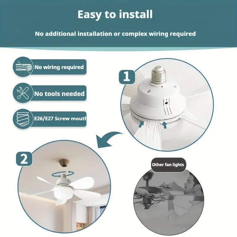 E27 Socket Ceiling Fan Light Remote, Dimmable 3-Speed Quiet in Bedroom, Living Room, Kitchen, Garage and Dining Room-Suitable for all Seasons (1 Pcs)