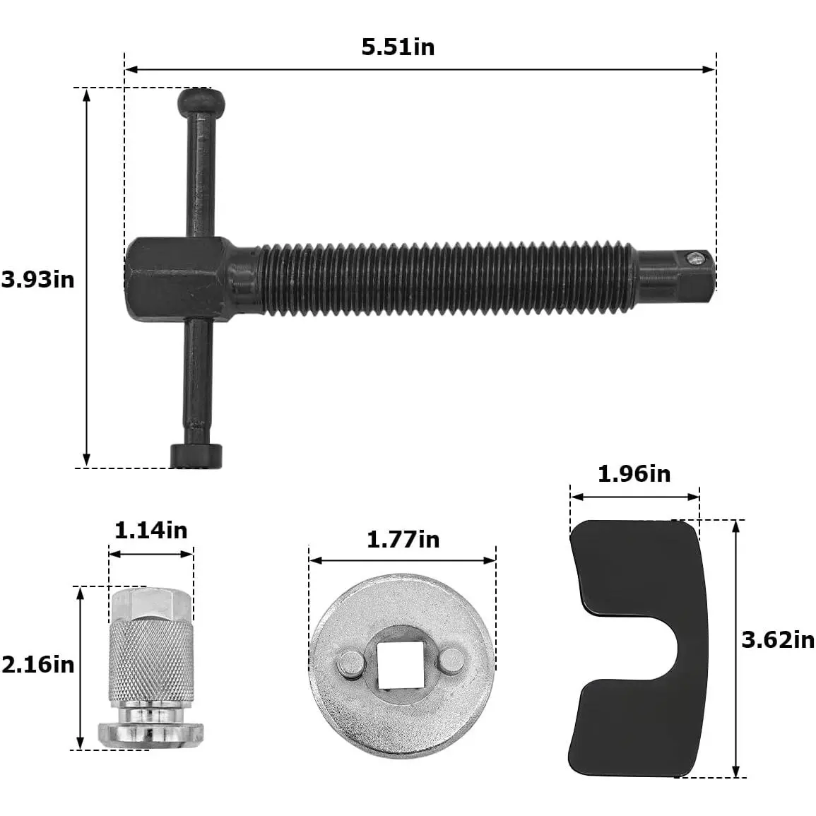 High Quality: Made of 45# steel, long service life, high hardness, not easy to deformation.It has been wrought by fine work and is more resistant to impact and wear than ordinary steel.If you want to change your brake pads, this is a must.Easy to Operate: The retracting tool for the rear brake pads of the car is easy to use, and the retracting piston is available on the left and right screw piston calipers, so you can operate it easily.It made things quick, easy and painless.Size: Screw size is 5.4*3.7in, top piece size is 3.5*1.8in, please confirm the size before purchase.If you just started using it, it's a bit time consuming, please don't rush it.Practical and Efficient: Brake caliper piston winding tool, used to install brake pads of domestic and imported cars and trucks with return air piston calipers.Applicable: This handle set brake caliper winding tool is ideal for removing or installing press fittings such as ball joints, universal joints, automotive brake fixing pins, etc.