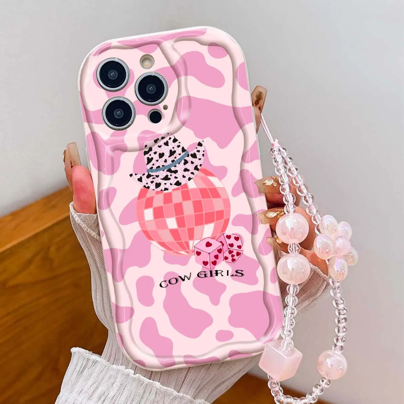 Disco Ball Heart Dice Tpu Phone Case with Lanyard, Shockproof Wave Edge, Fits Apple Models, Girl's Gift, Festival Present