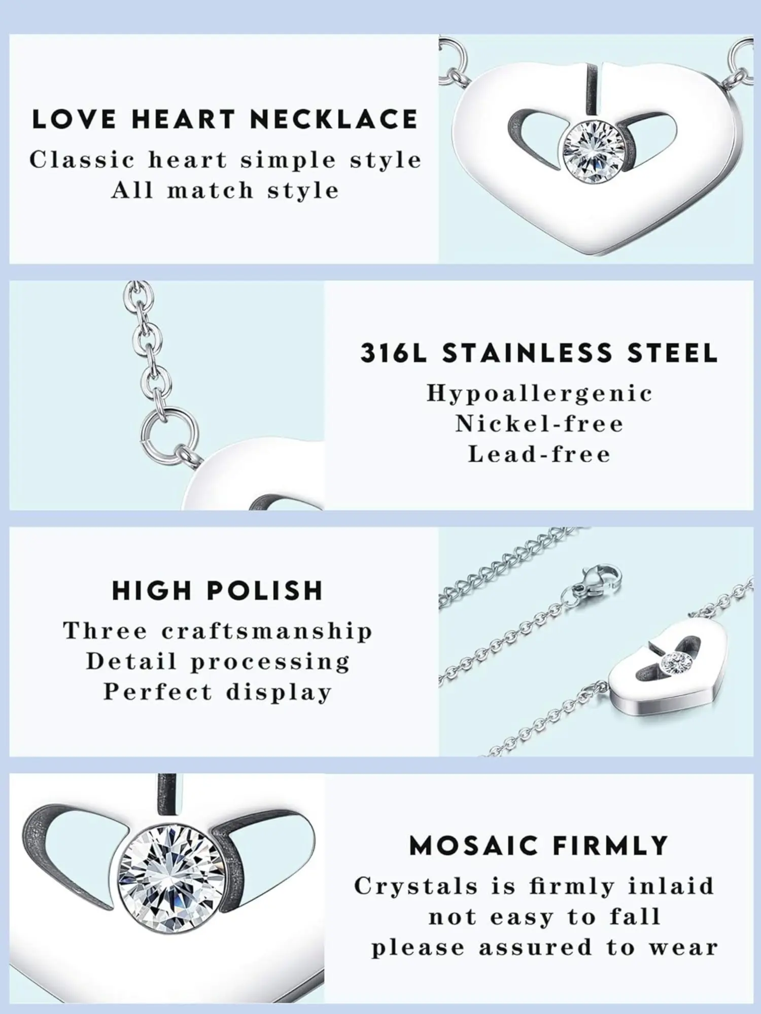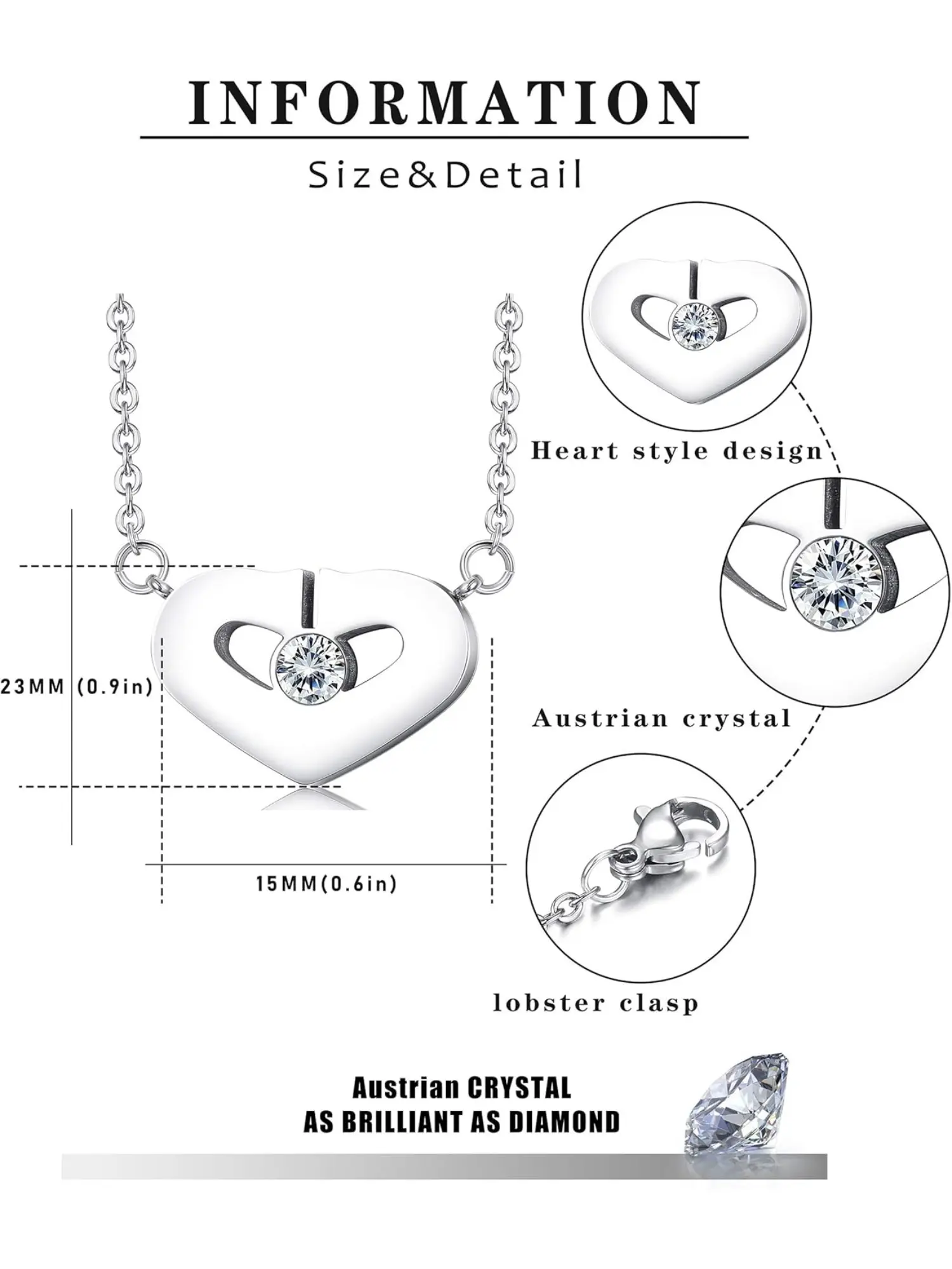 5. 1 Pc Silvery Sweet Swarovski Crystal Heart Necklace for Women Men Trendy 316L Stainless Steel Dainty Love Pendant Necklace with Shining Swarovski Crystal Hypoallergenic Jewelry for Rave Festival Perfect Gift for Her