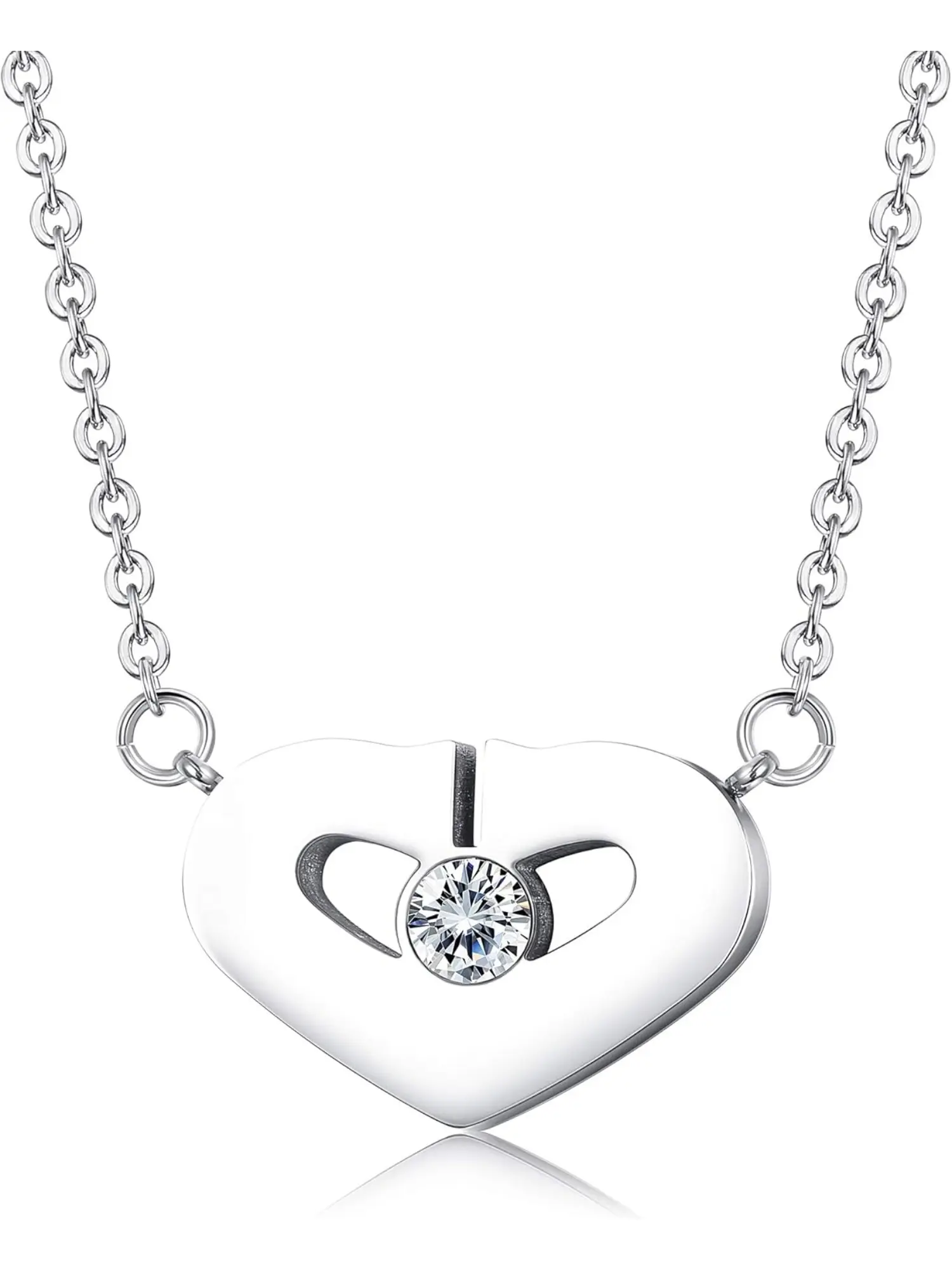 1 Pc Silvery Sweet Swarovski Crystal Heart Necklace for Women Men Trendy 316L Stainless Steel Dainty Love Pendant Necklace with Shining Swarovski Crystal Hypoallergenic Jewelry for Rave Festival Perfect Gift for Her