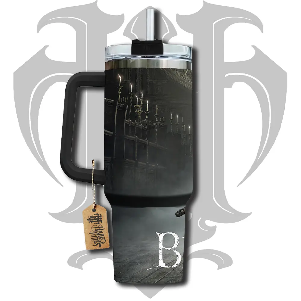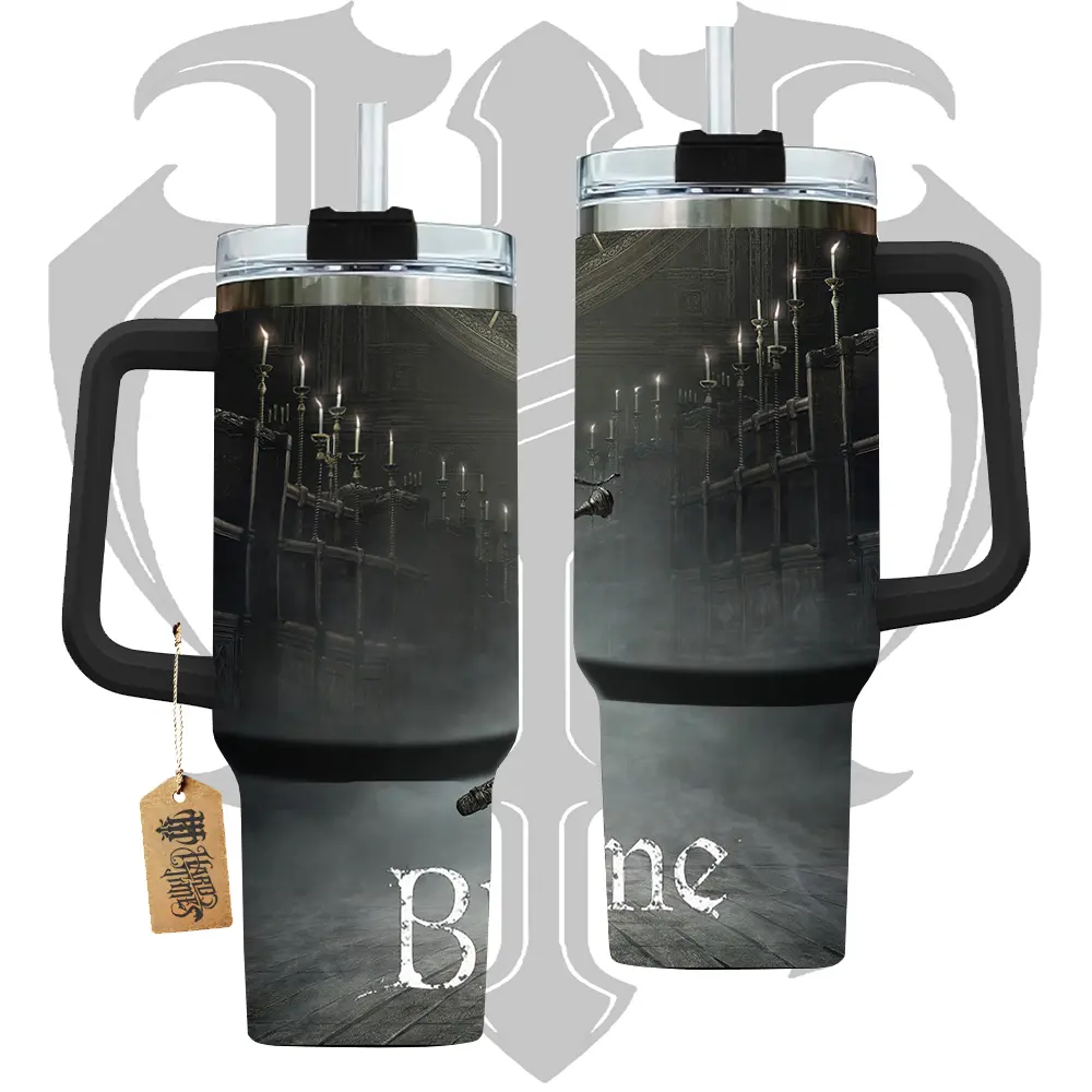 HardTimesMerch - BloodBorne #1 40oz Handle Tumbler Stainless Steel Travel Mug, Game Inspired Vacuum Insulated Cup, Large Iced Coffee Tumbler, Manga Fighter Drinkware, Gamer Gift for Him Her