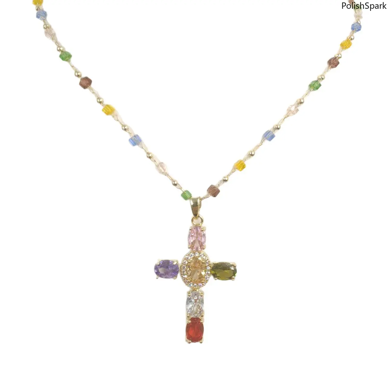 Looking for a delicate, eye-catching necklace that blends vintage charm, religious sentiment, and trendy Y2K style? This premium colorful zircon cross necklace is your perfect choice! Featuring a stunning cross pendant inlaid with multi-color cubic zirconia, paired with a dainty rainbow crystal beaded chain, this necklace delivers a luxurious, elegant look that catches every eye. Perfect for daily wear, date nights, parties, and as a thoughtful gift for your loved ones.