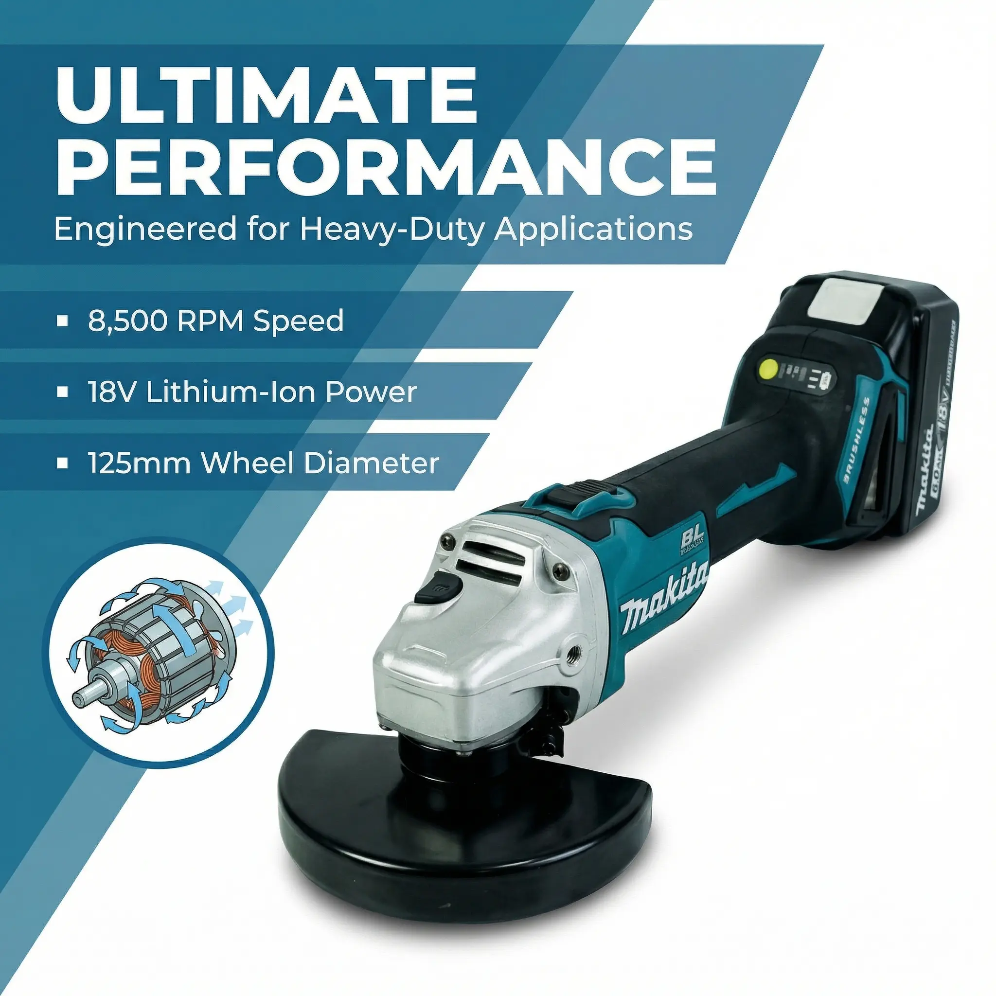 Makita DGA404 125mm Brushless Angle Grinder Bare Tool for Metal Cutting Grinding Cordless Grinder High Speed 18V