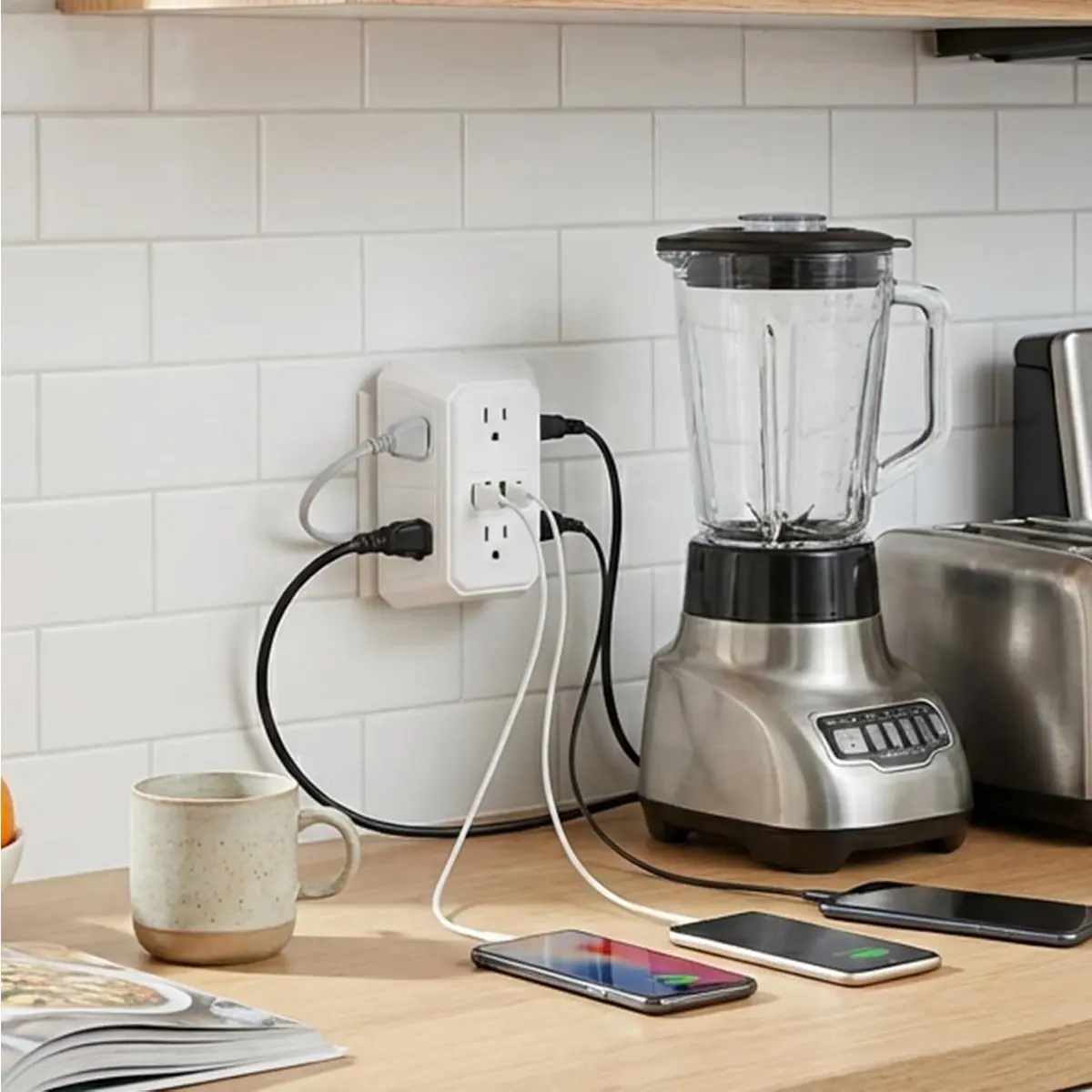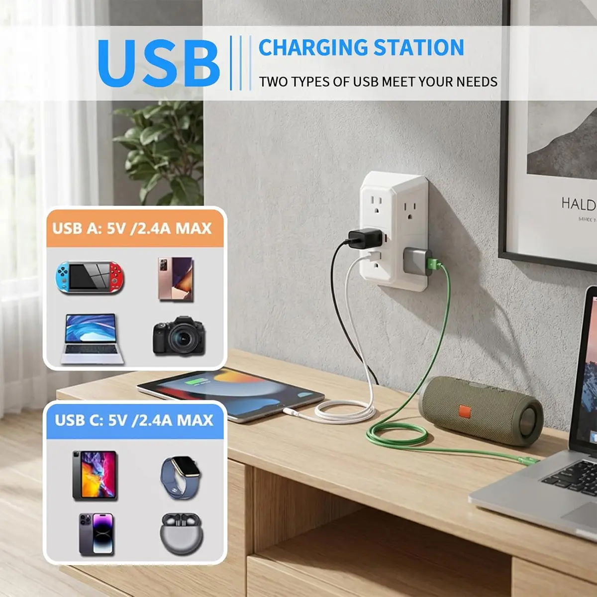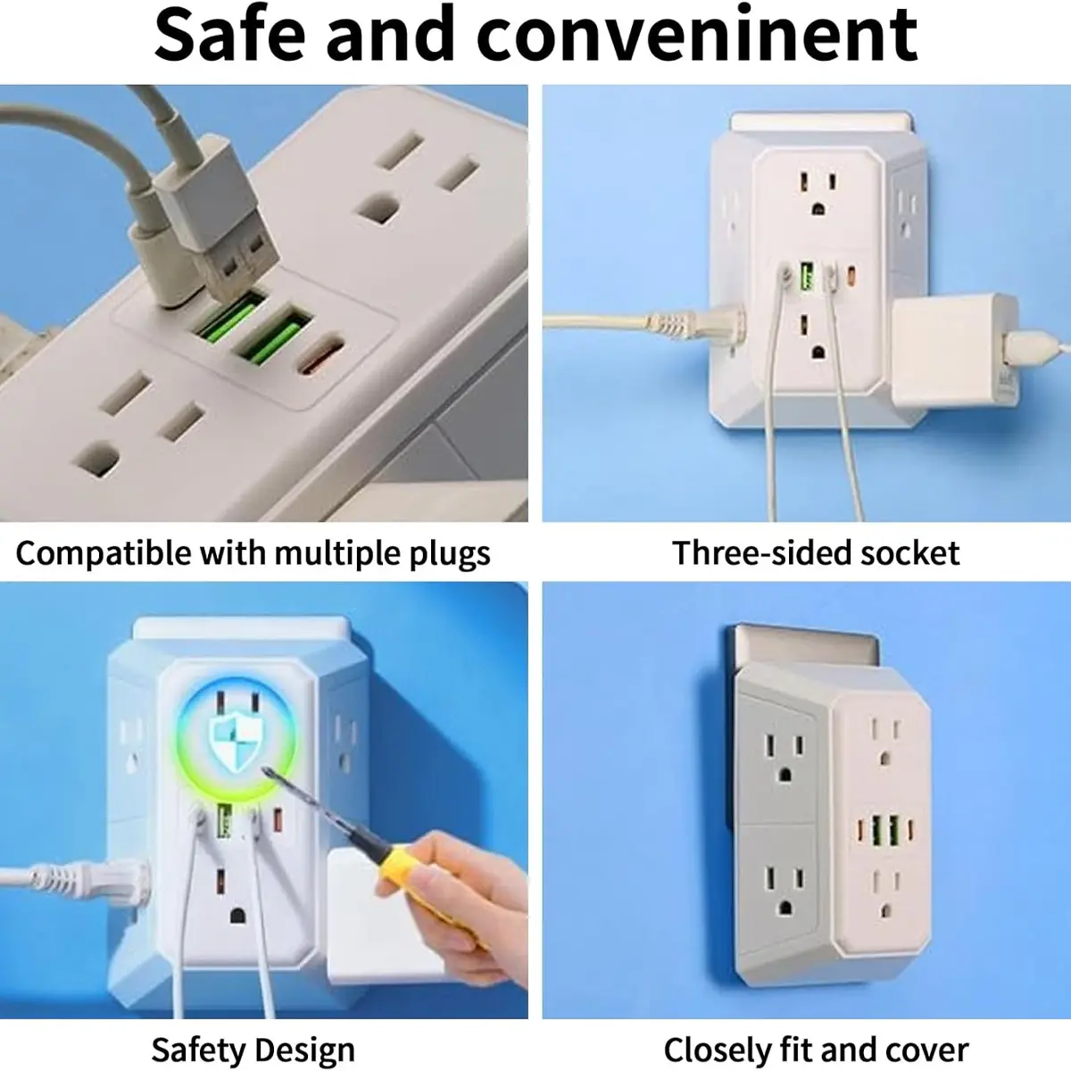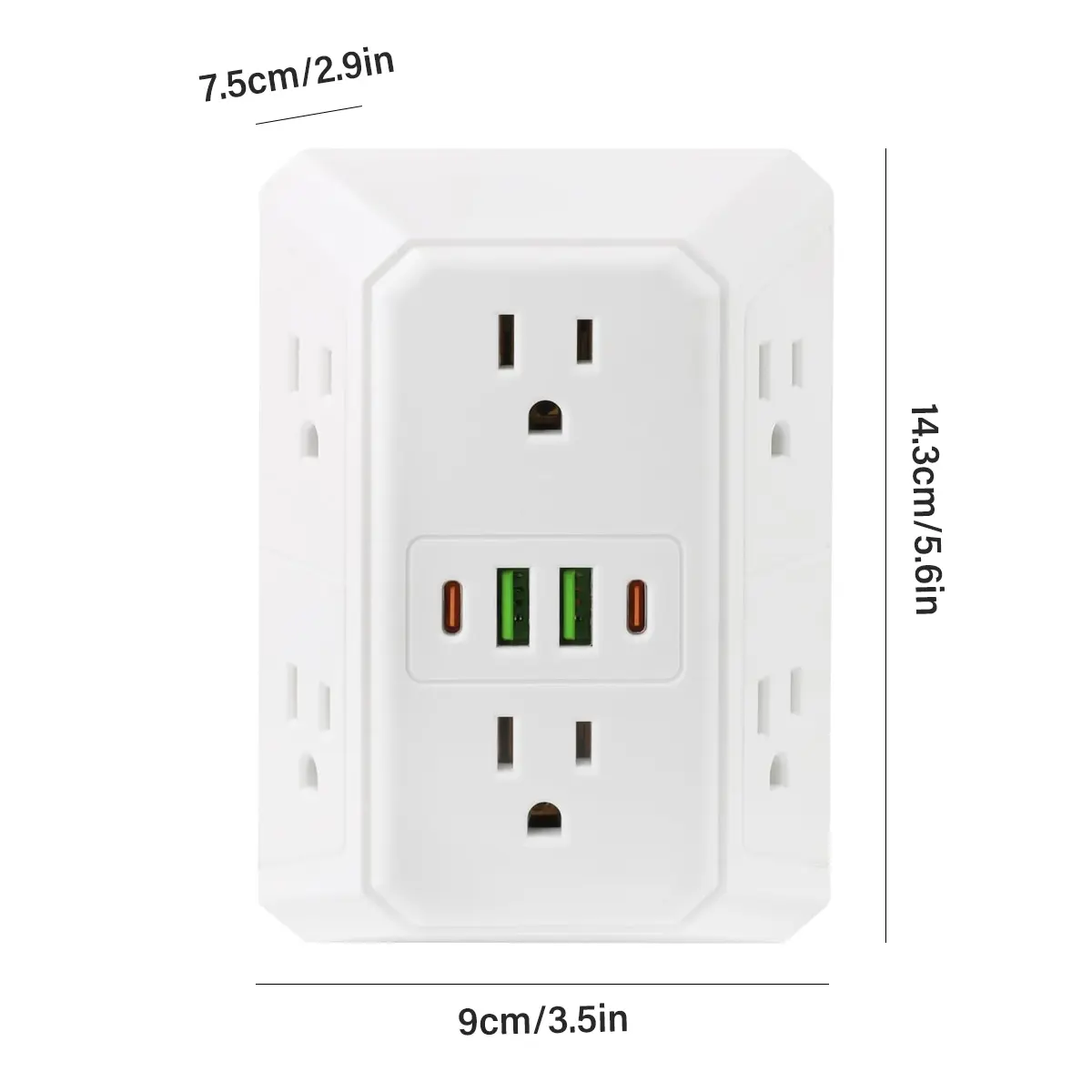 Expansion from 1 to 6: American standard plug design, a single-hole socket can instantly transform into 6 sockets. AC power port + 4 USB ports (including 2 USB-C ports), meeting the simultaneous power supply needs of multiple devices.