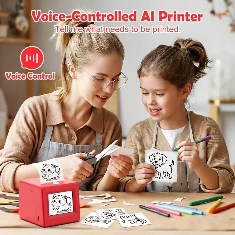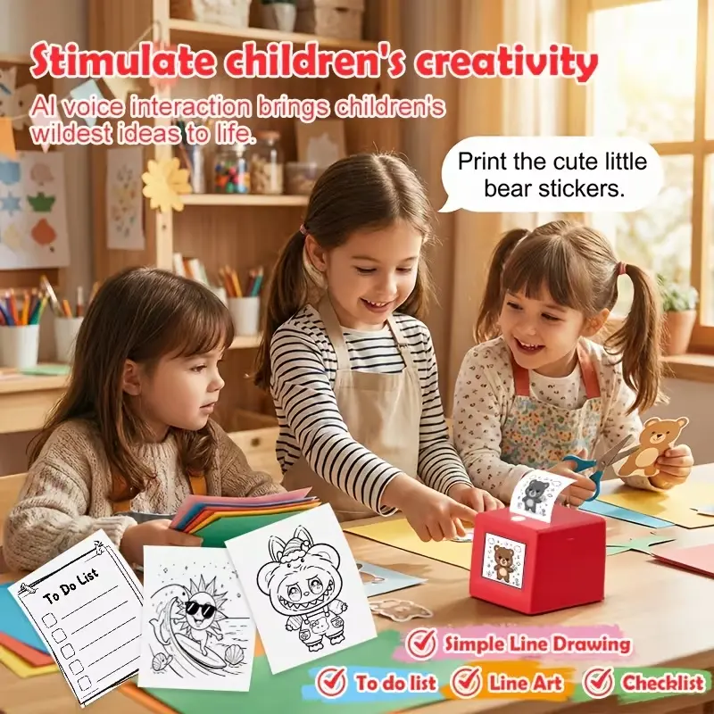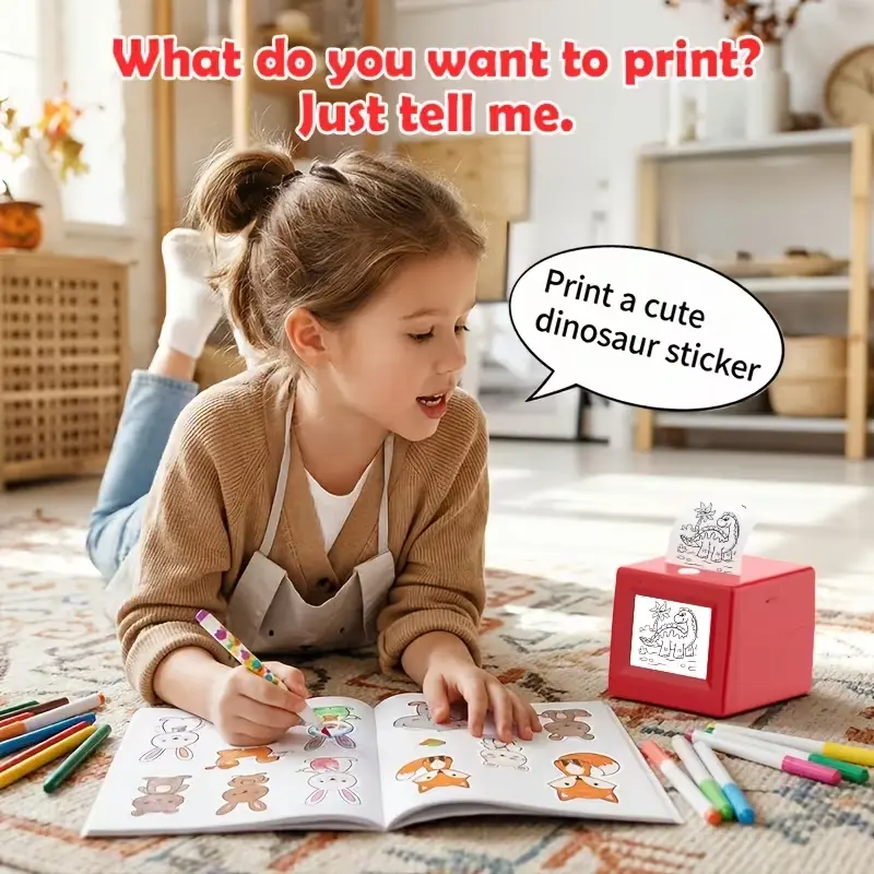 ·【AI Voice-to-Sticker Creation:】AI Voice Sticker Box Printer combines advanced stickerbox AI with voice control for easy operation.Turn your voice into sticker maker machine instantly. Simply speak and let AI generate unique sticker content, making creativity faster, easier, and more fun.Create custom stickers on the go with this fun, easy-to-use gadget for kids.