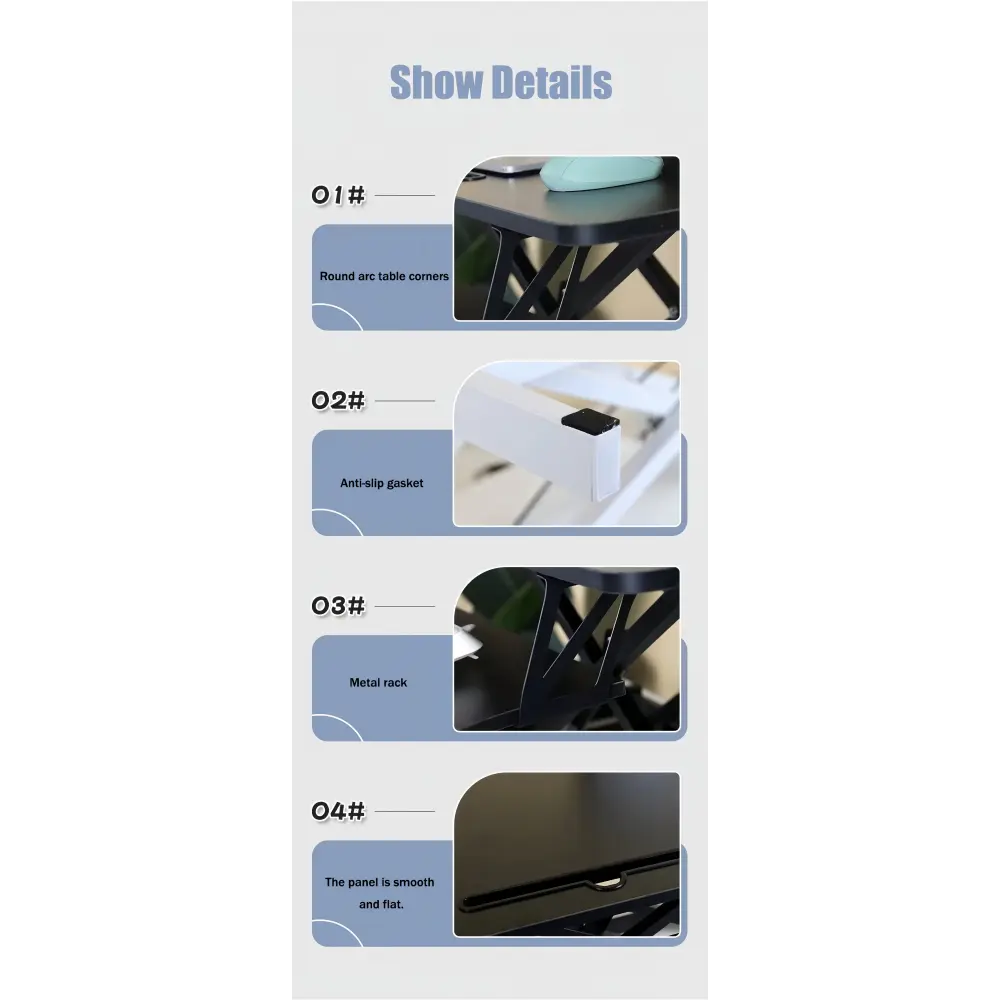 【STURDY STRUCTURE】Ergonomic design standing desk. The solid structure keeps your desk riser steady and the maximum weight hold up to 30 lbs.