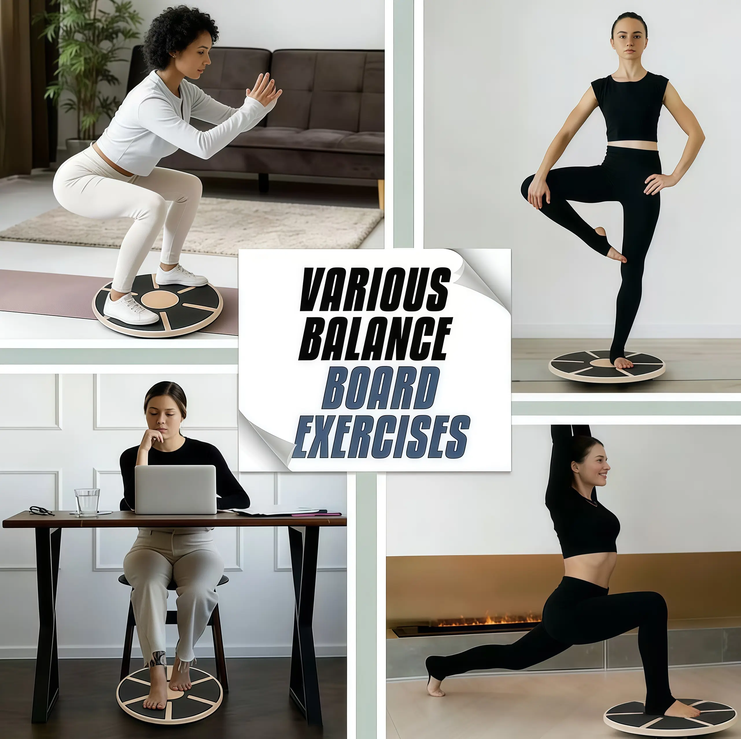 Wooden balance board, used for core stability training, 360-degree rotation, non-slip, rehabilitation training, and balance training.